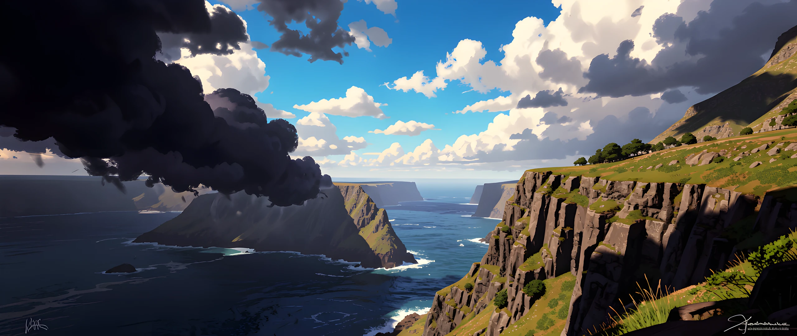 cliffs colorful dark storm sun weather