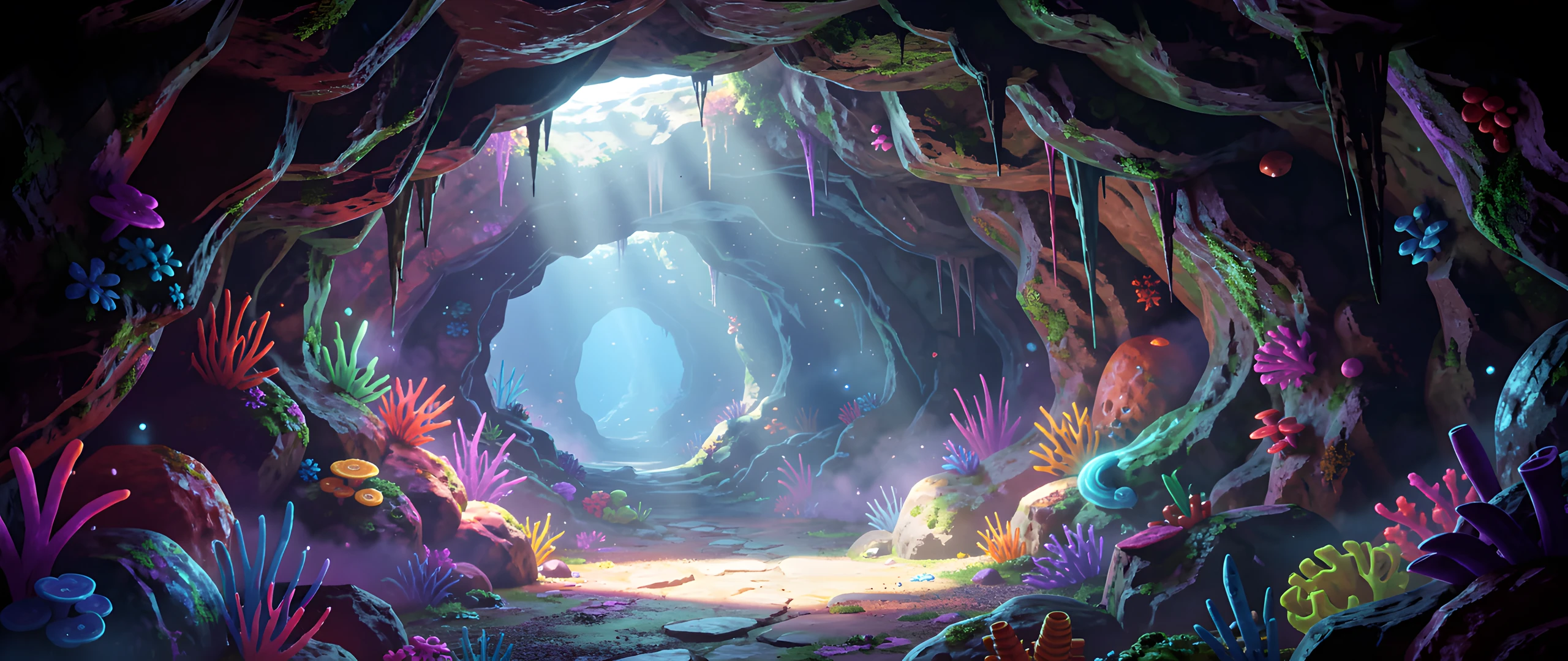 cave colorful colors dreamy light underwater