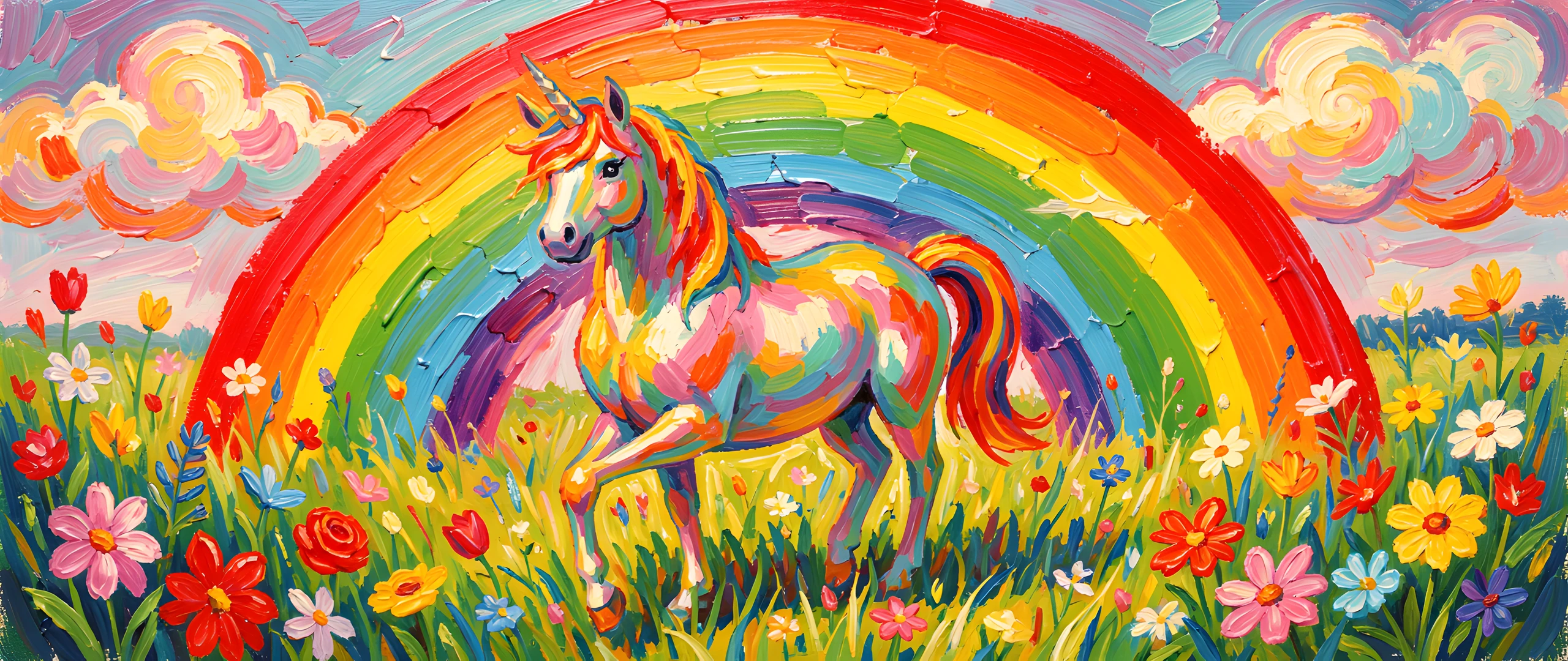 brushstrokes colorful colors field impressionist post rainbow thick unicorn