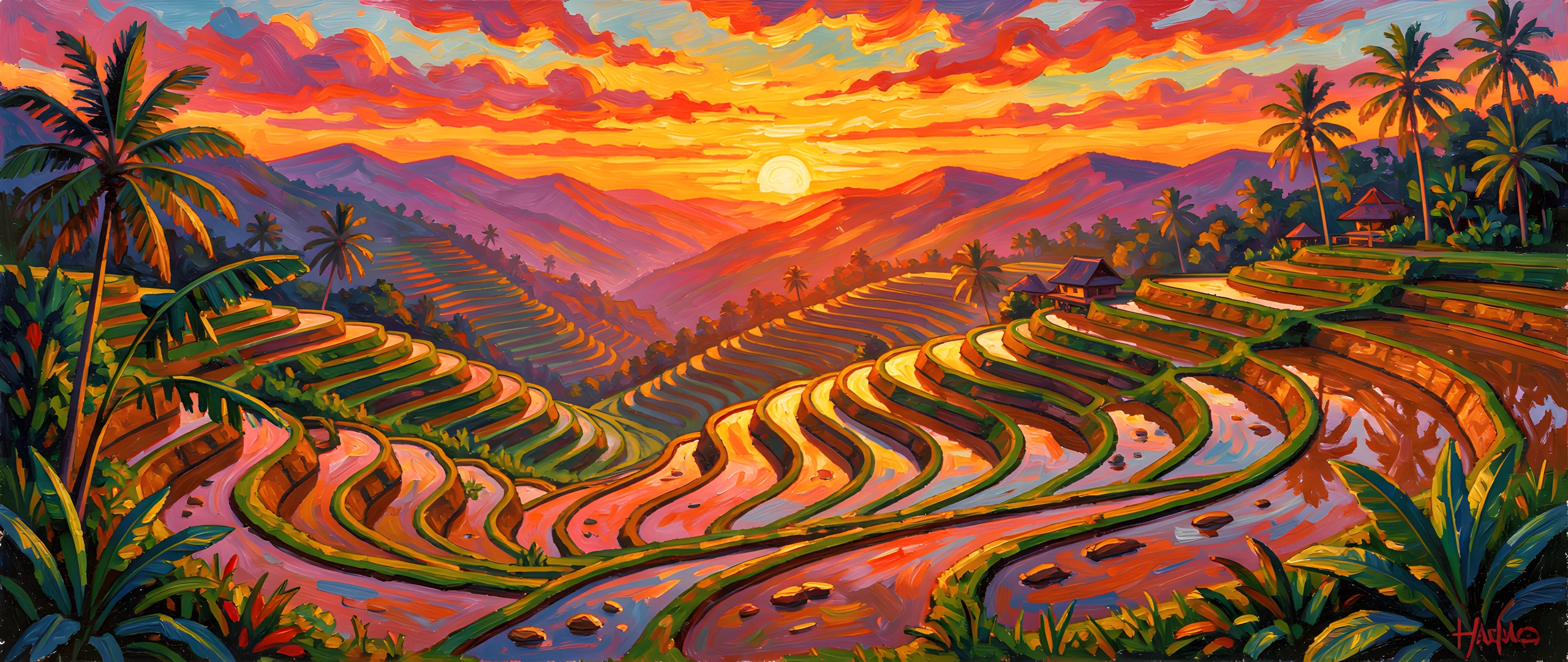 bali brushstrokes colorful colors impressionist post rice sunrise terraces thick
