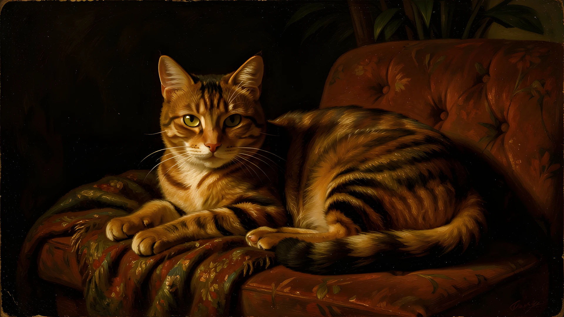 cat chiaroscuro cozy lofi painted rembrandt warm
