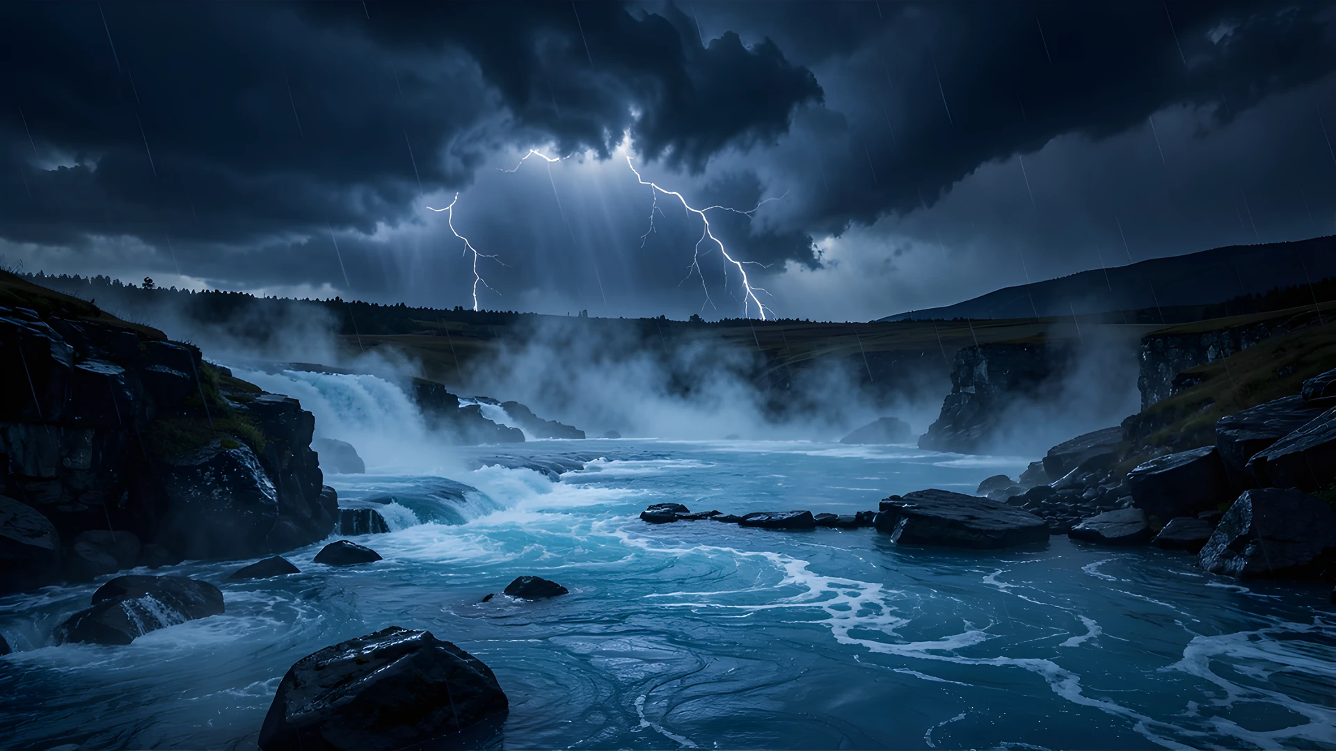 blue chiaroscuro geothermal lake storm under