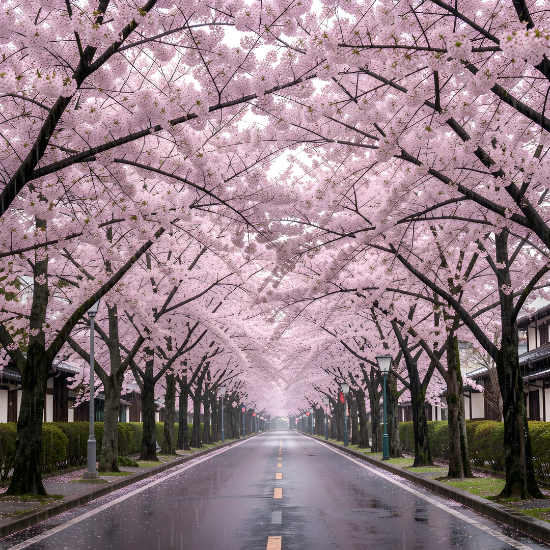blossom cherry japan rain tunnel
