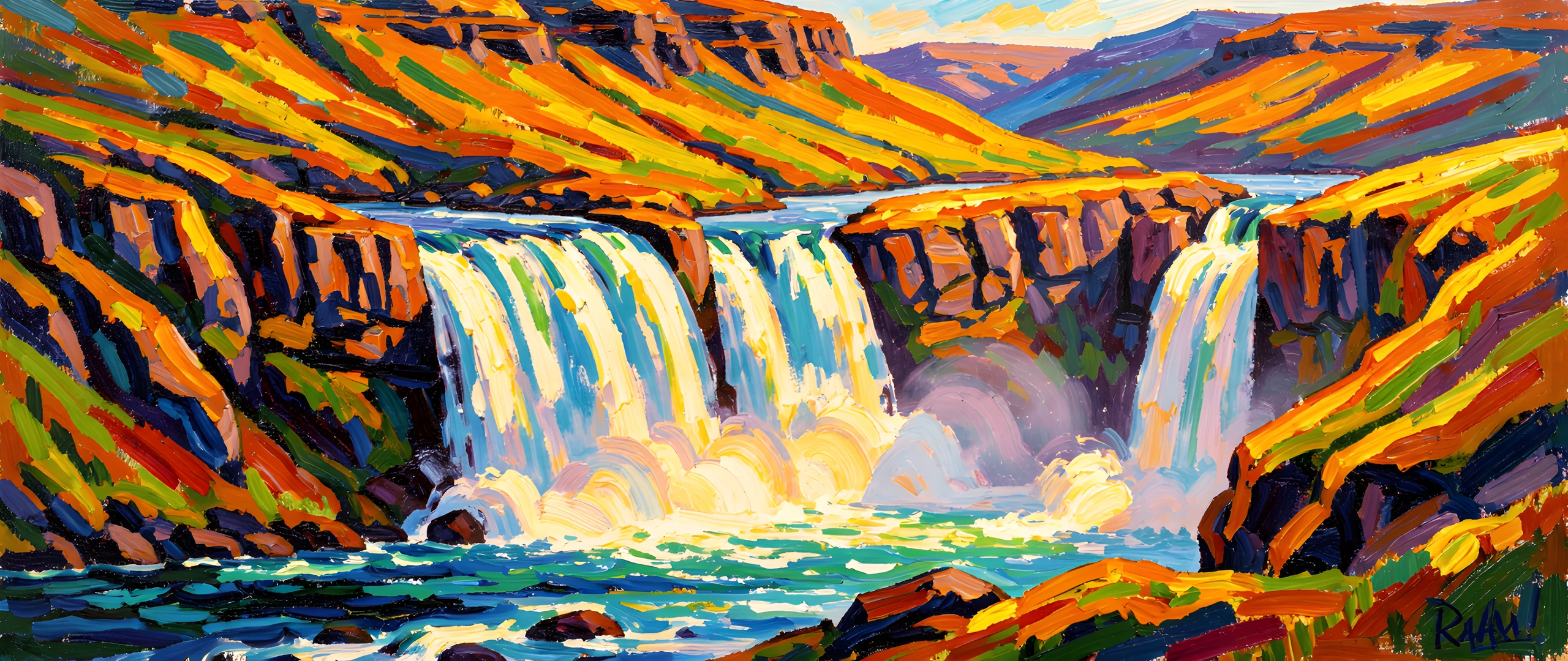 brushstrokes colorful colors dramatic iceland impressionist post sunlit thick waterfall