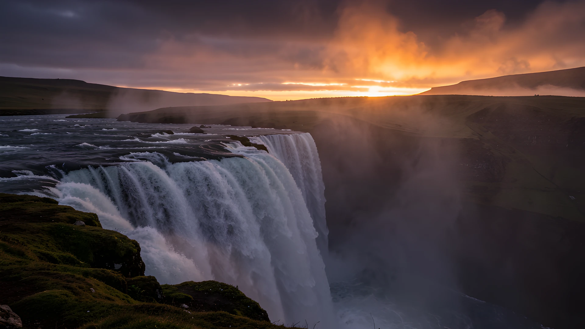 dark dramatic iceland mist sunrise waterfall