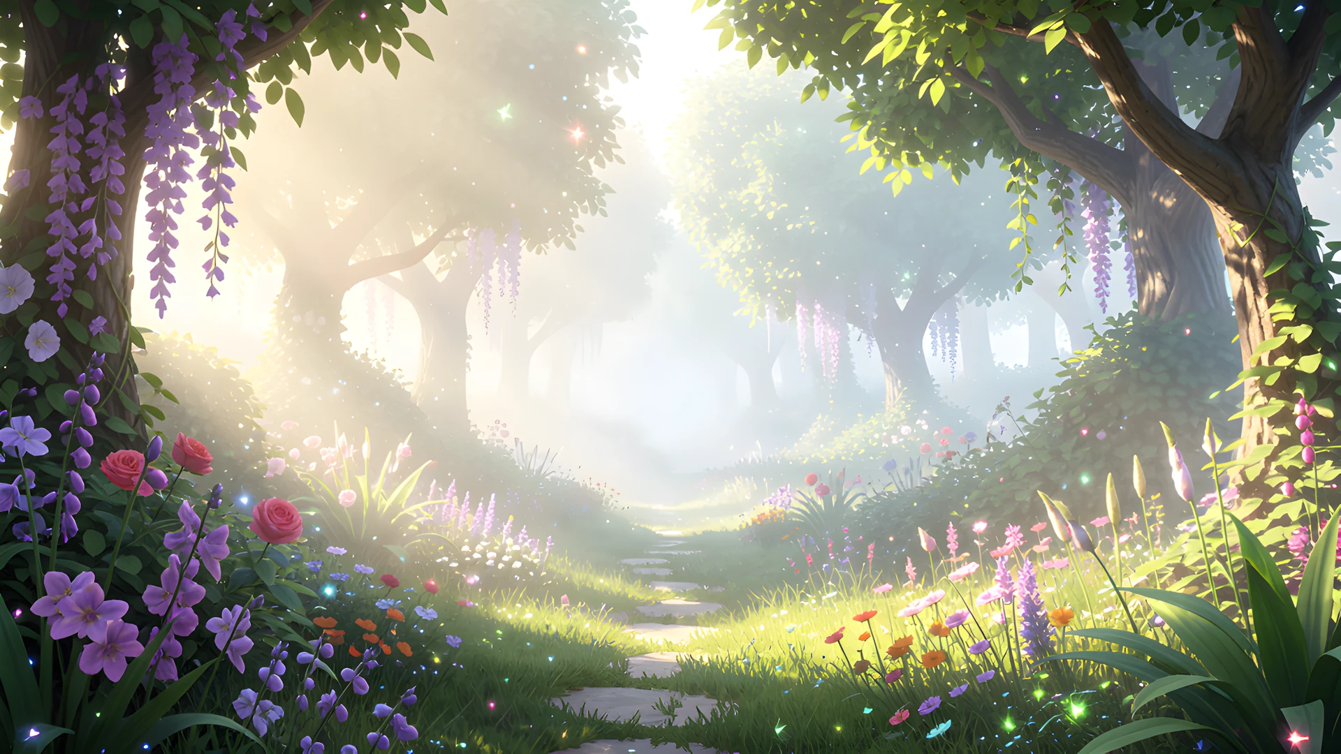 fantasy garden glow mist noon