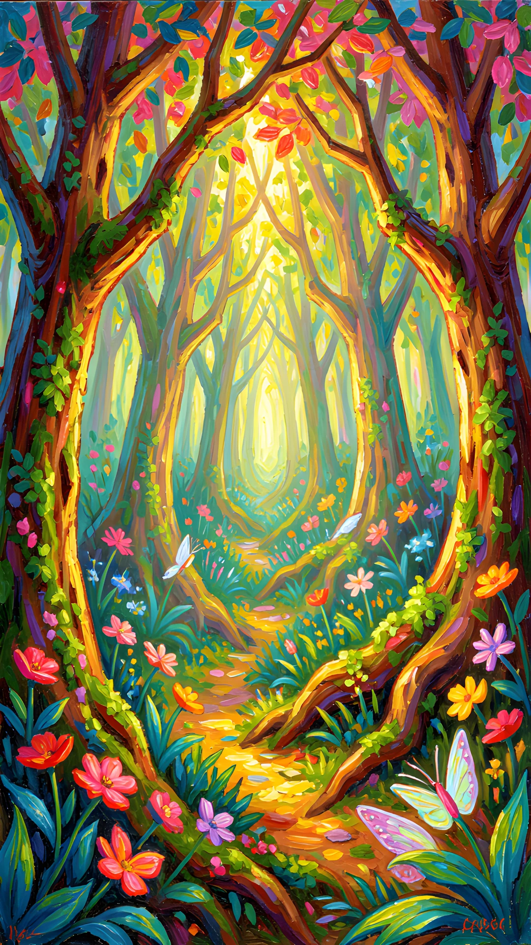 brushstrokes colorful colors fairy forest glow impressionist post thick