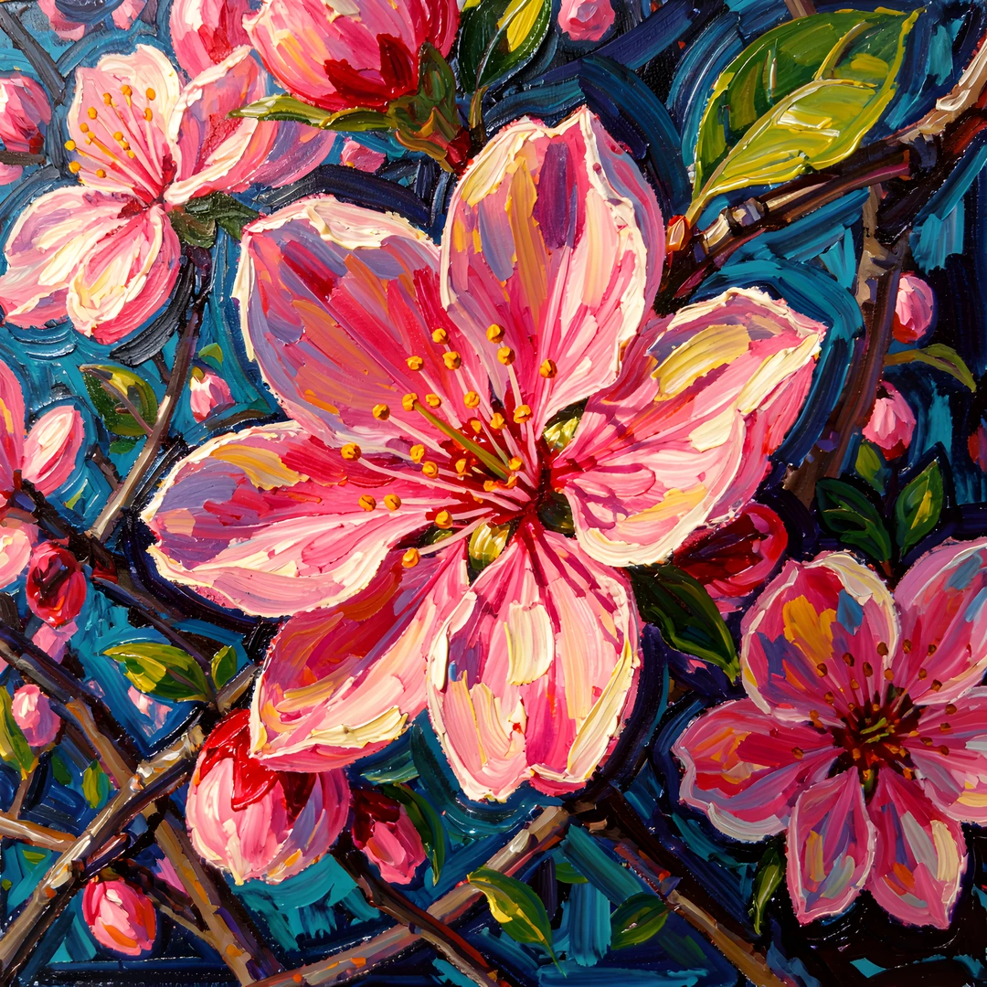 blossom brushstrokes cherry colorful colors impressionist macro night post thick