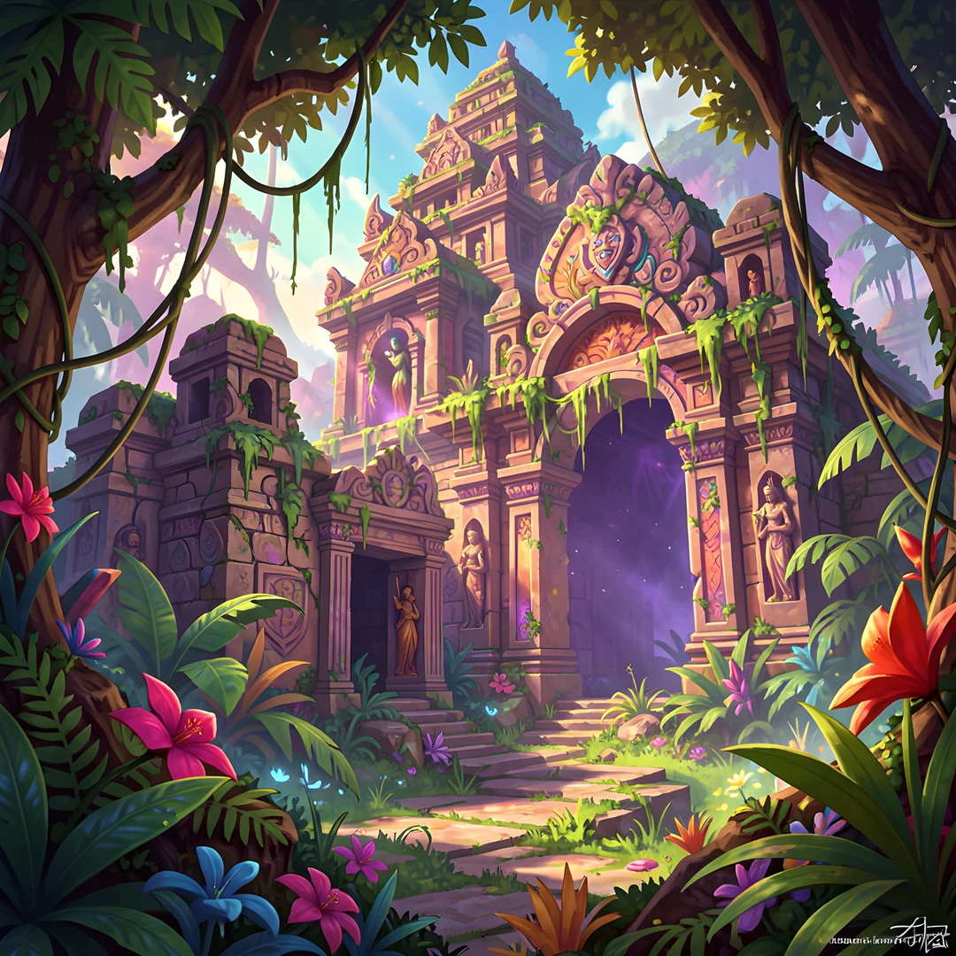 ancient colorful jungle magic ruined