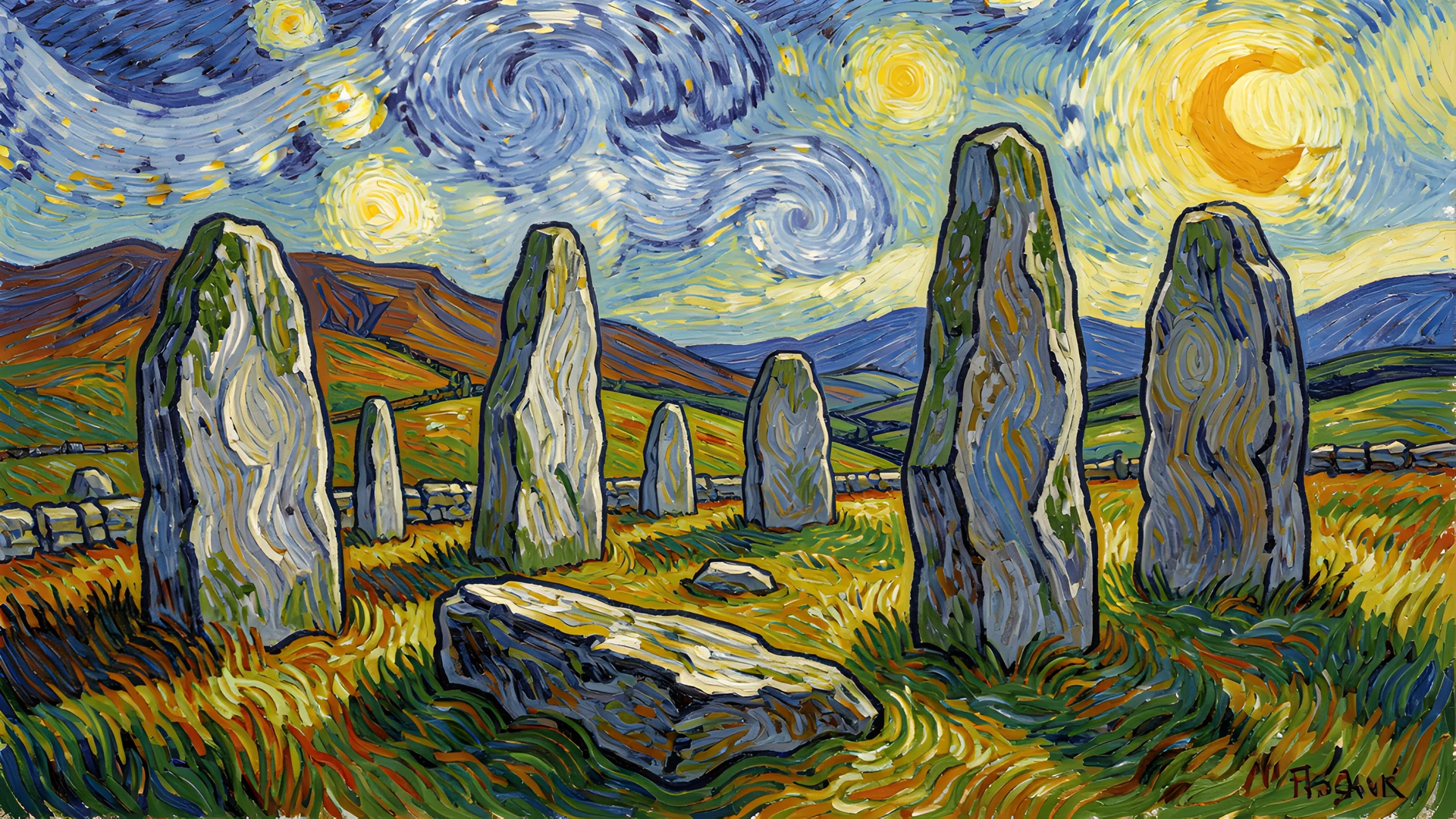 ancient gogh scotland standing stones style van