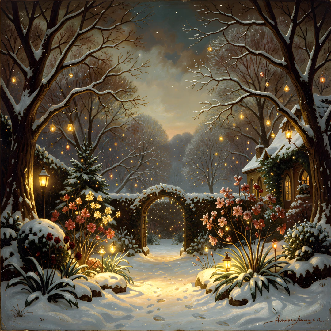 fantasy garden glow painted rembrandt snow