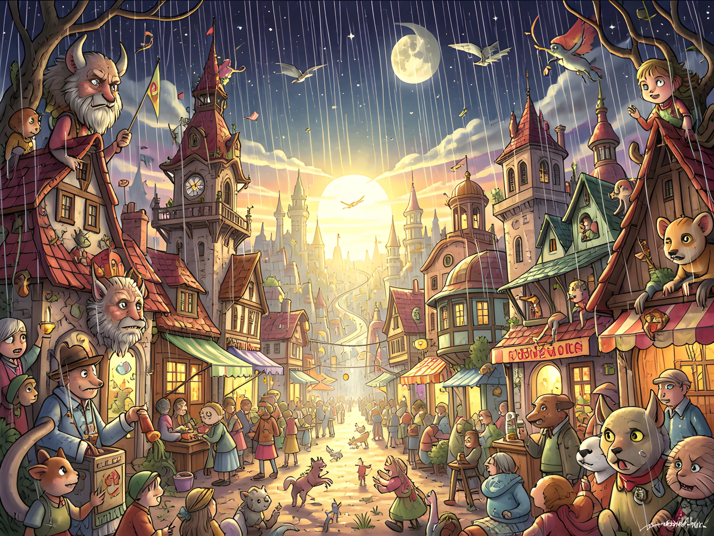 anime bosch hieronymus night rain style sunlit urban