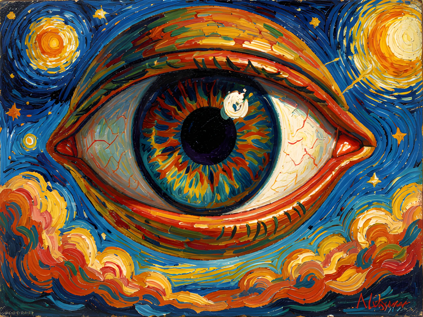 brushstrokes colorful colors da eye floating giant impressionist leonardo post sky style thick vinci