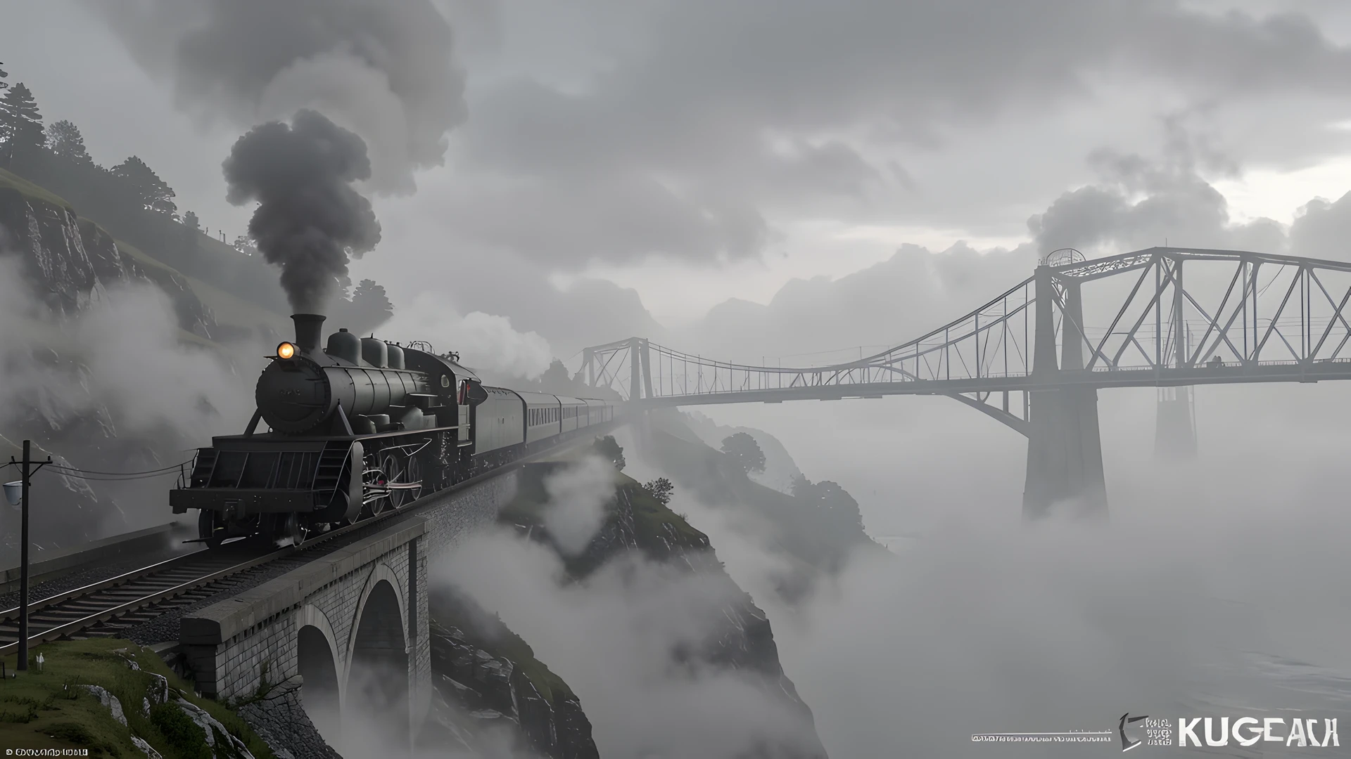 bridge cloud mist steam train
