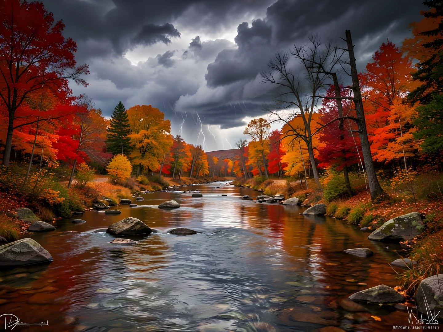 autumn colors indoor river storm under