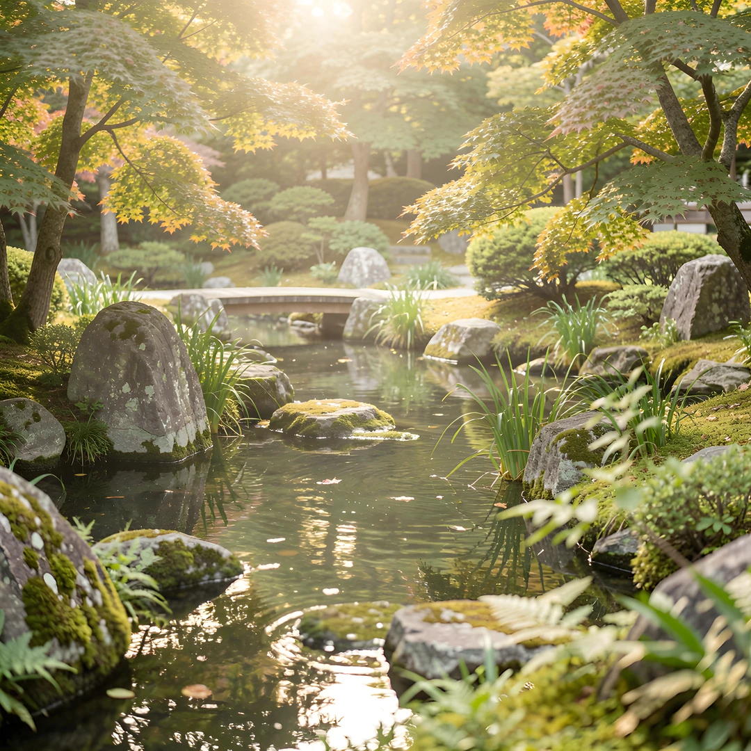 diffused garden japanese lake light soft