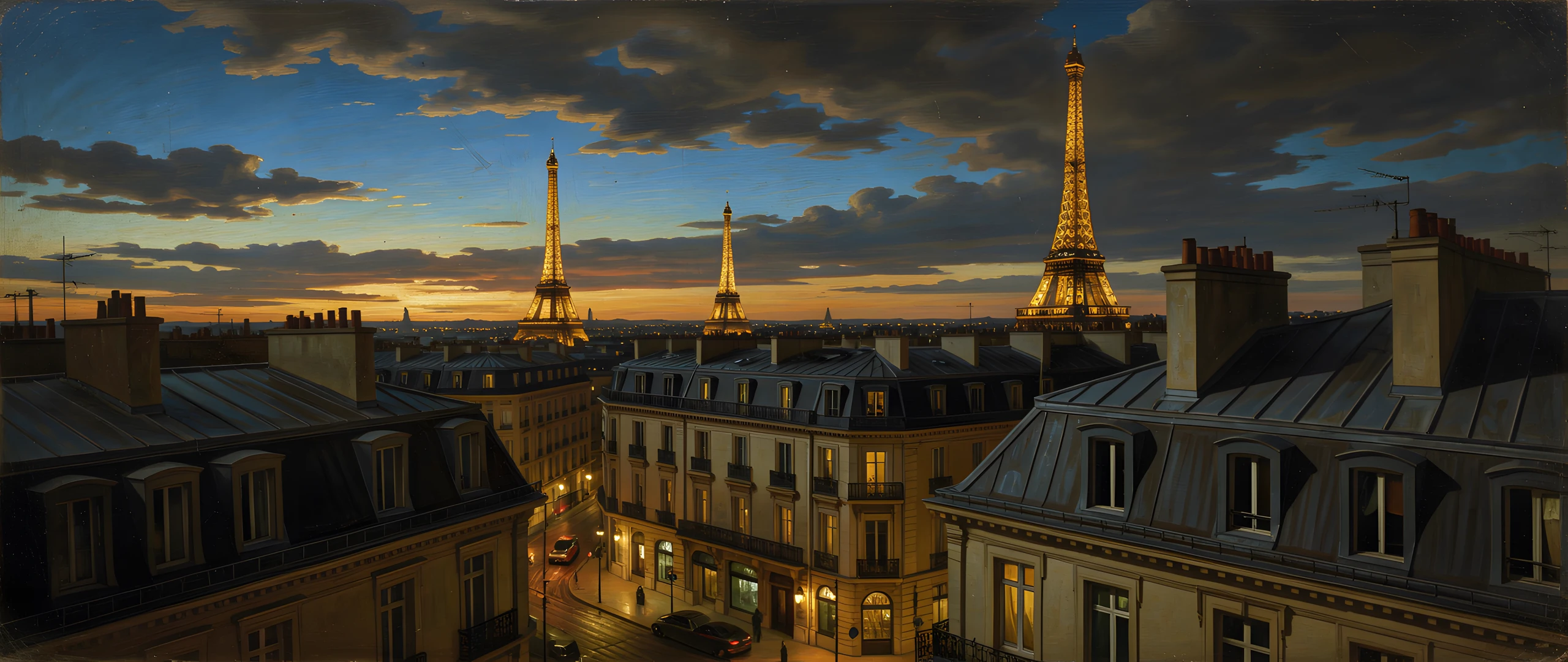 blue caravaggio hour night paris rooftops style