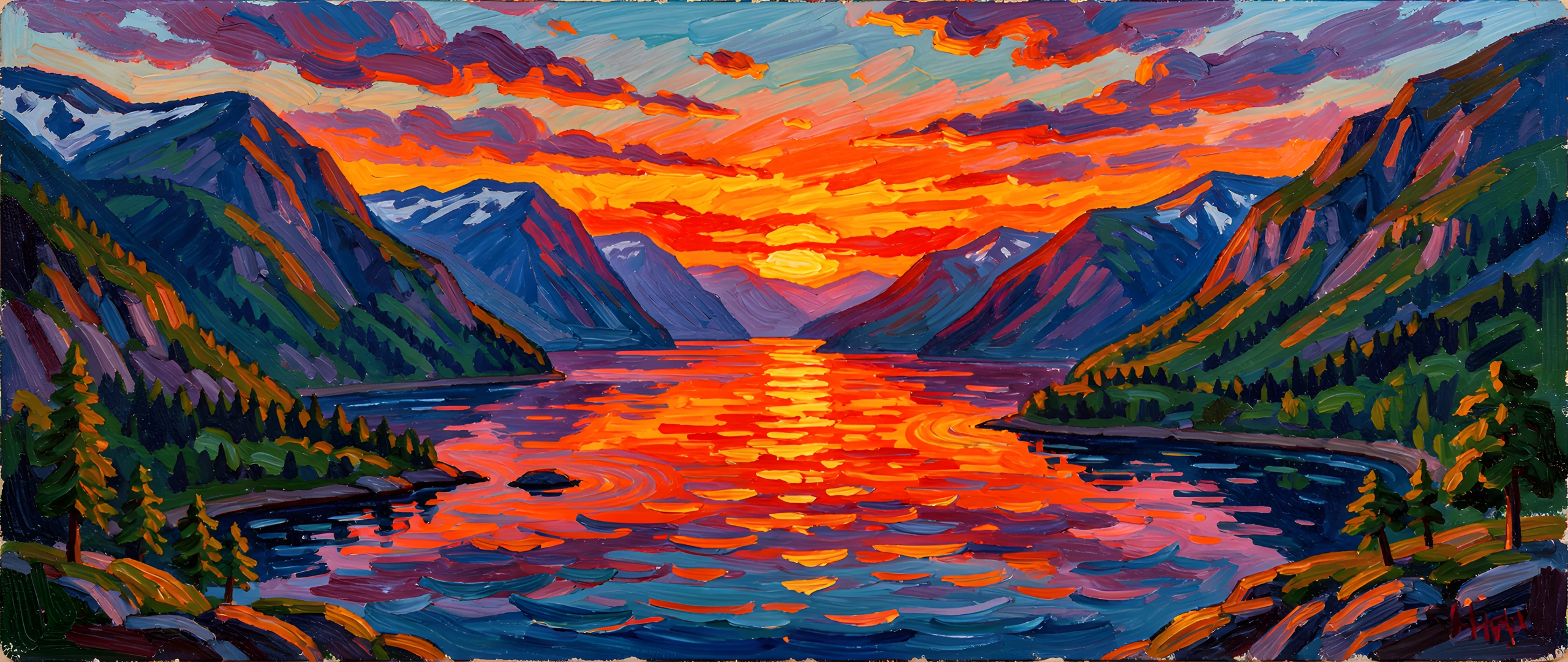 brushstrokes colorful colors fjord impressionist norway post sunrise sunset thick