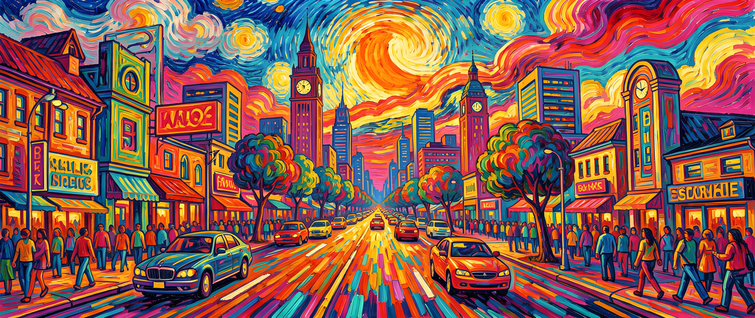 aesthetic brushstrokes colorful colors gogh impressionist post style thick urban van vaporwave