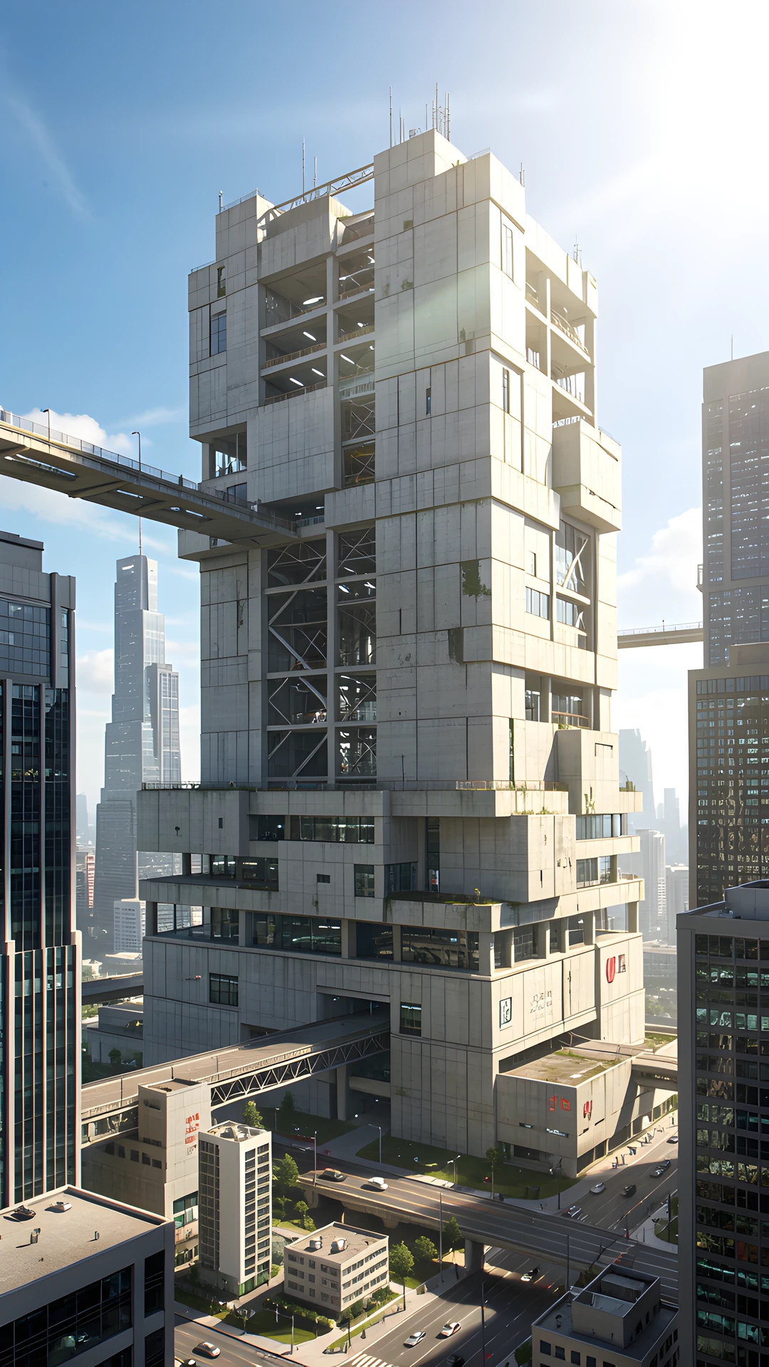 brutalist futuristic megastructure sunlit urban