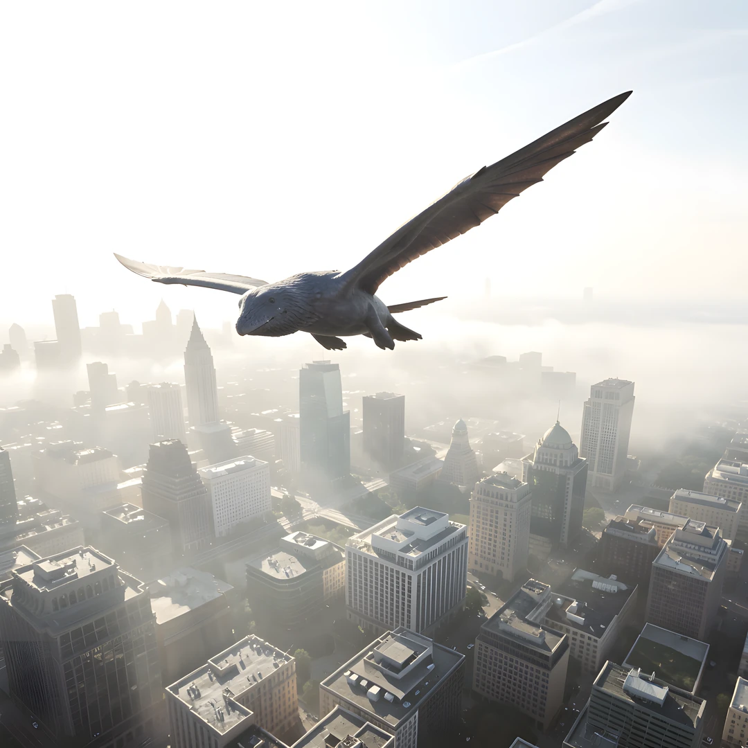 bright flying mist over urban whale