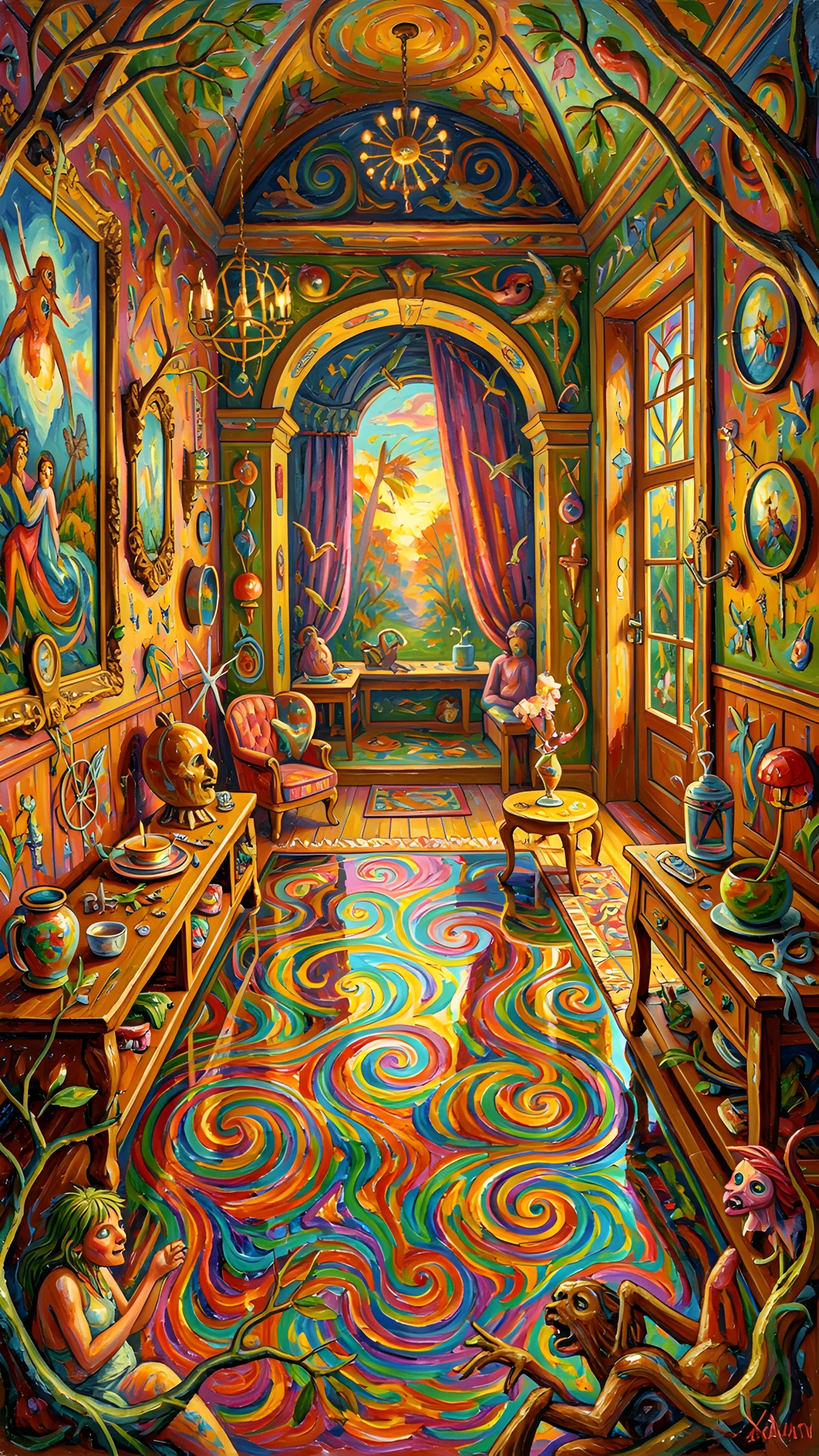 bosch brushstrokes colorful colors hieronymus impressionist indoor iridescent oil post slick style thick