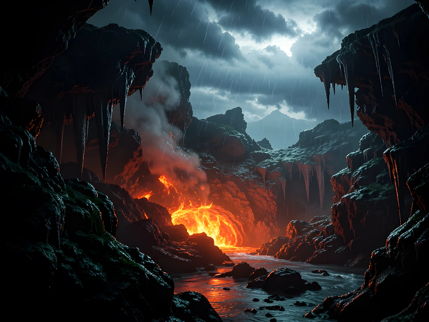 bright chiaroscuro hydrothermal ocean storm under vent