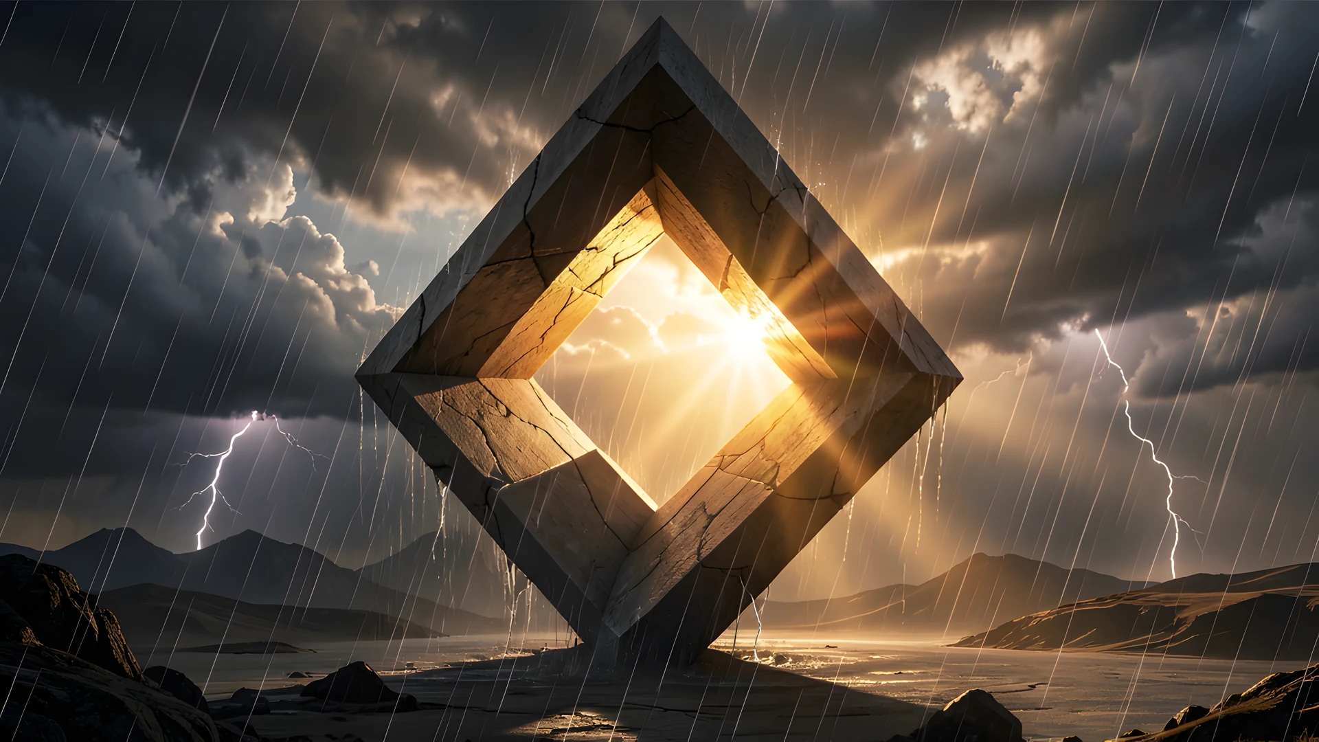 abstract impossible shapes storm sunlit under