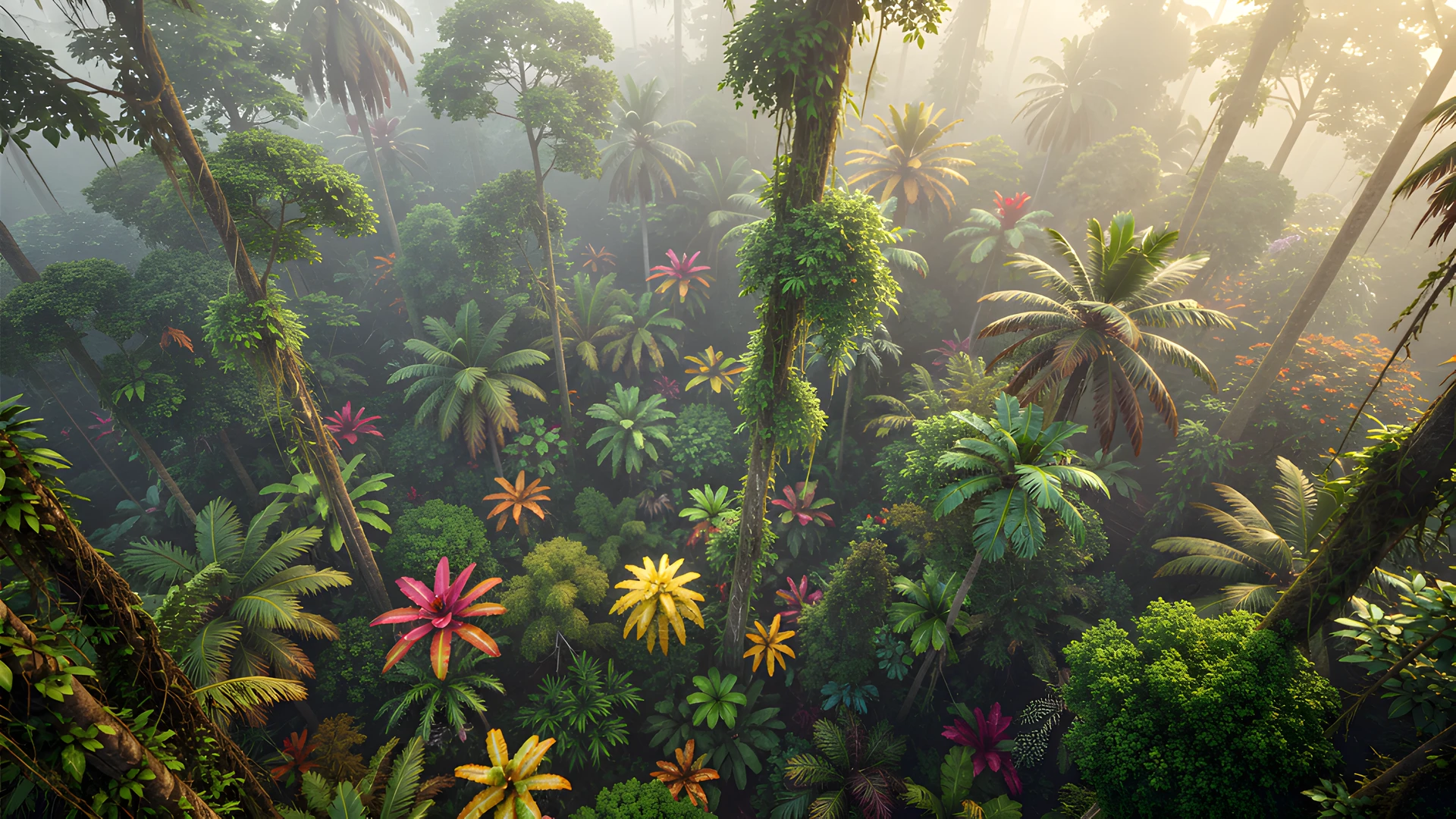 aerial canopy classical colorful colors jungle mist