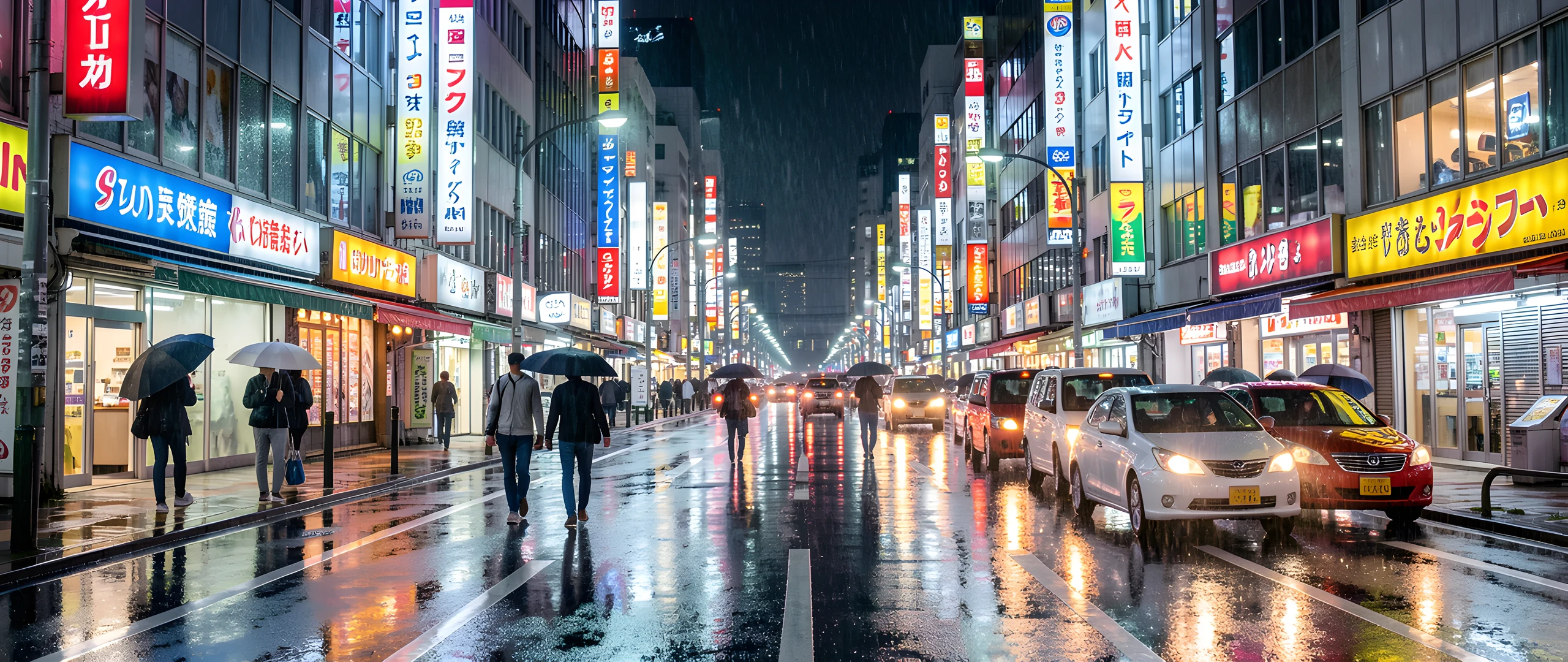bright night rain street tokyo