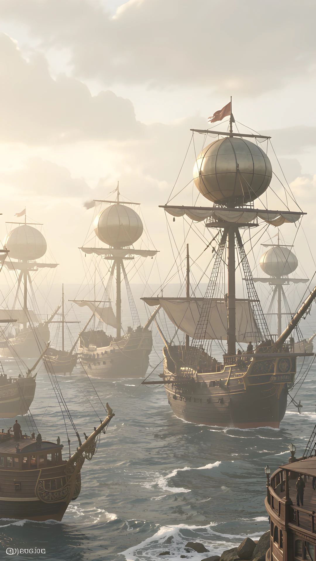 airship diffused fleet light soft sunlit victorian