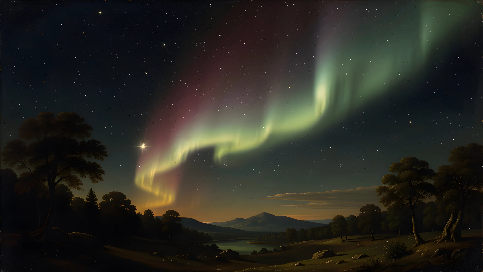 aurora chiaroscuro nightsky stars style vermeer