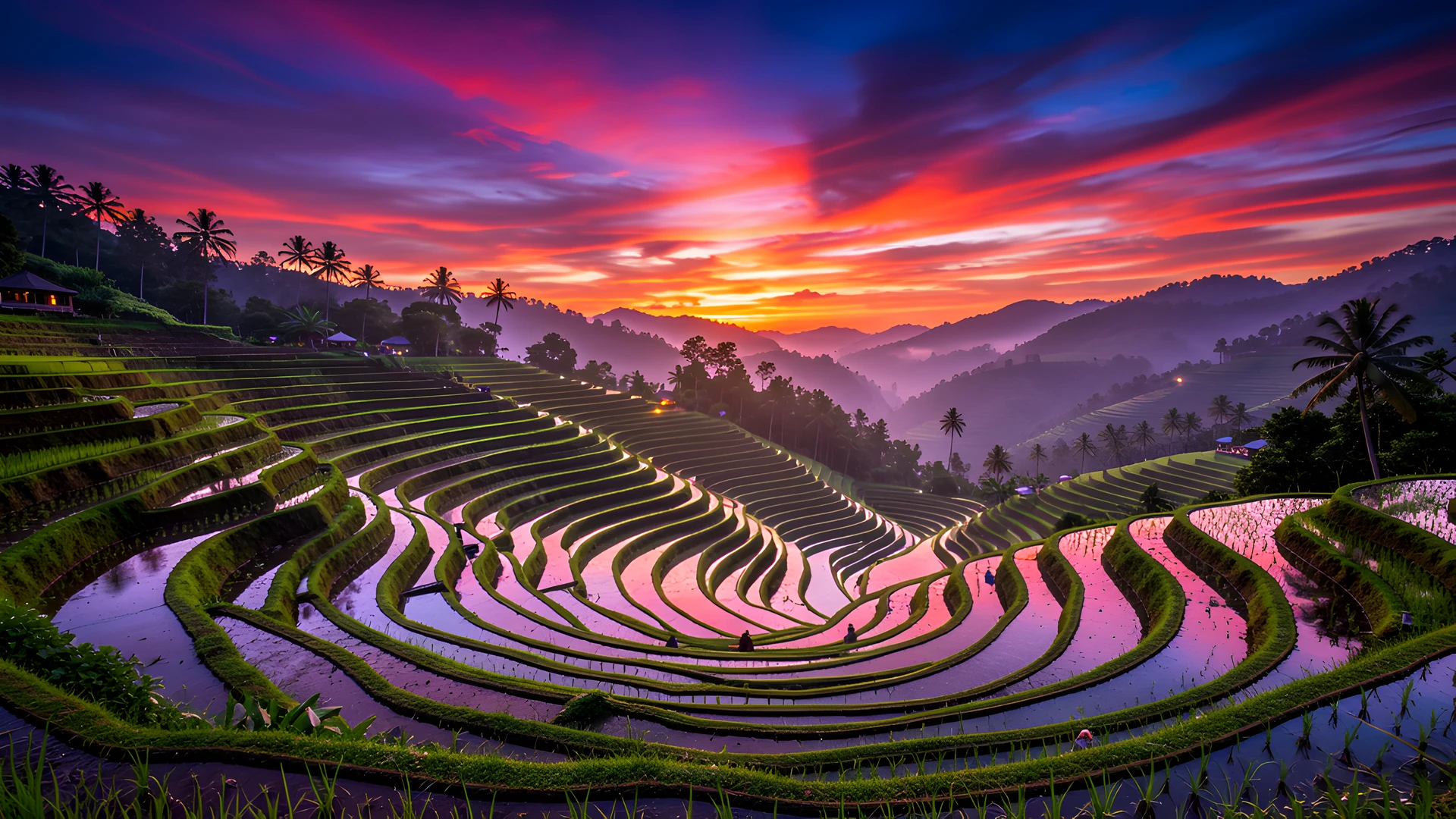 bali colorful night rice sunrise terraces