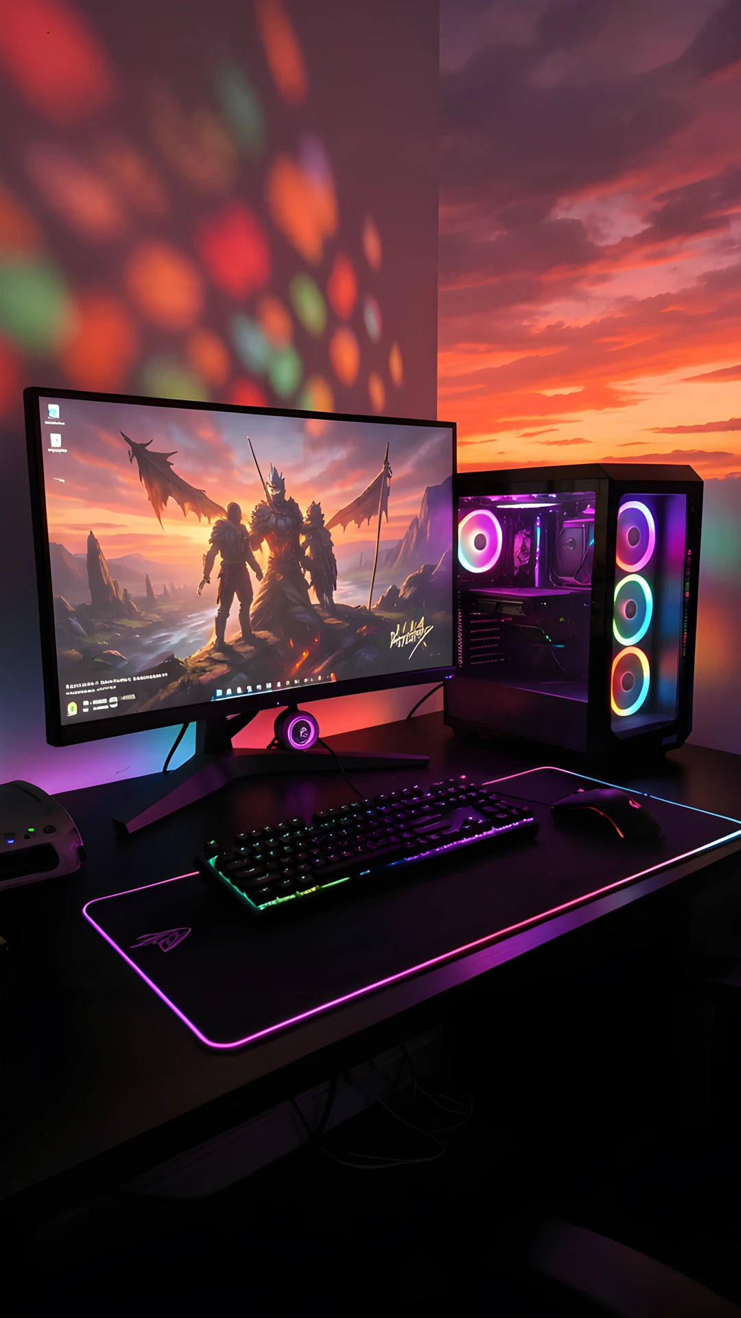 dappled dark gaming impressionist light rgb setup sunset