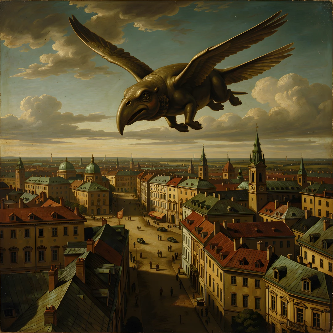 flying over painted rembrandt urban whale