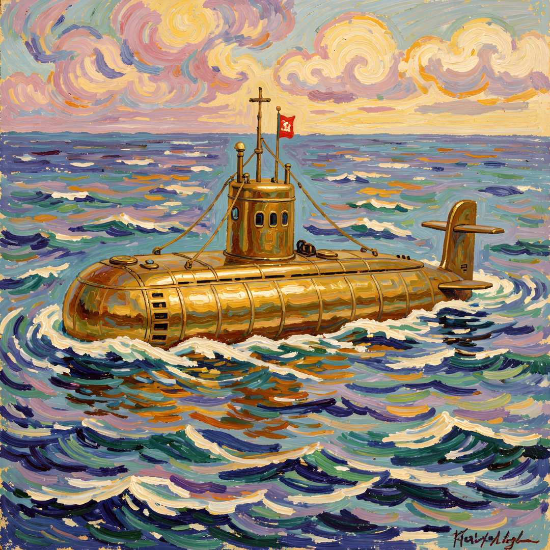 brass monet ocean painting snow style submarine