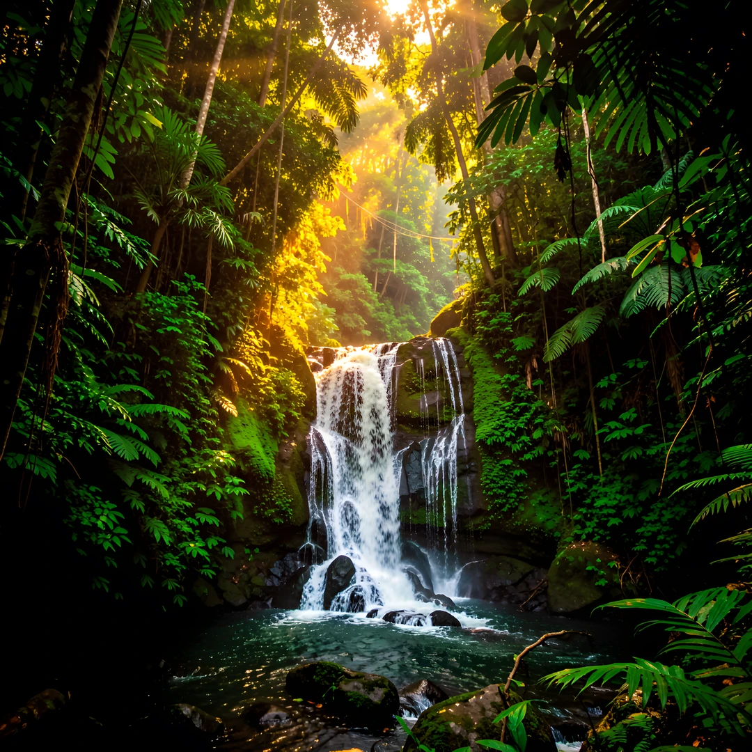 colorful colors deep golden highlight jungle shadows thai waterfall