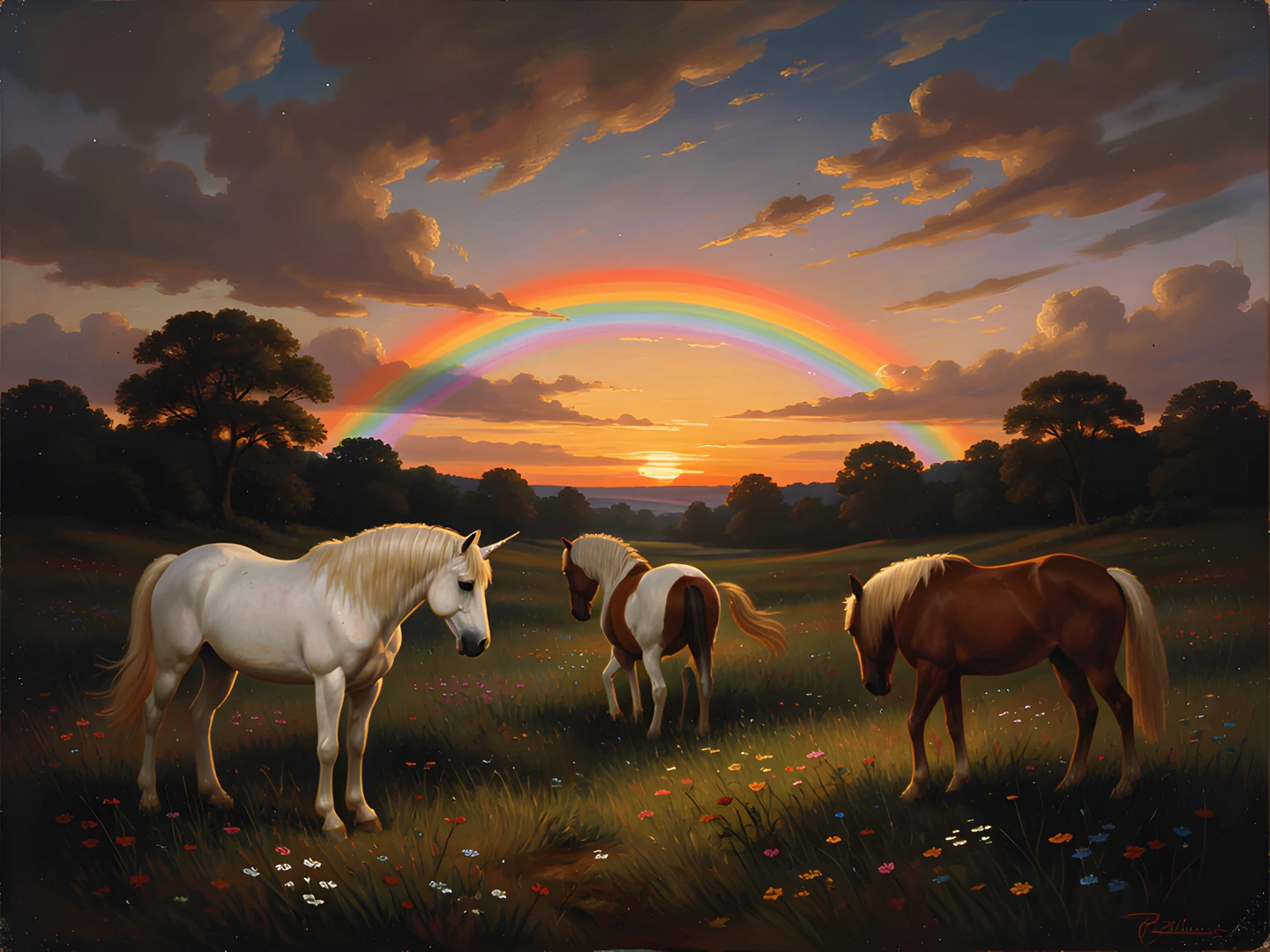 field painted rainbow rembrandt sunset unicorn