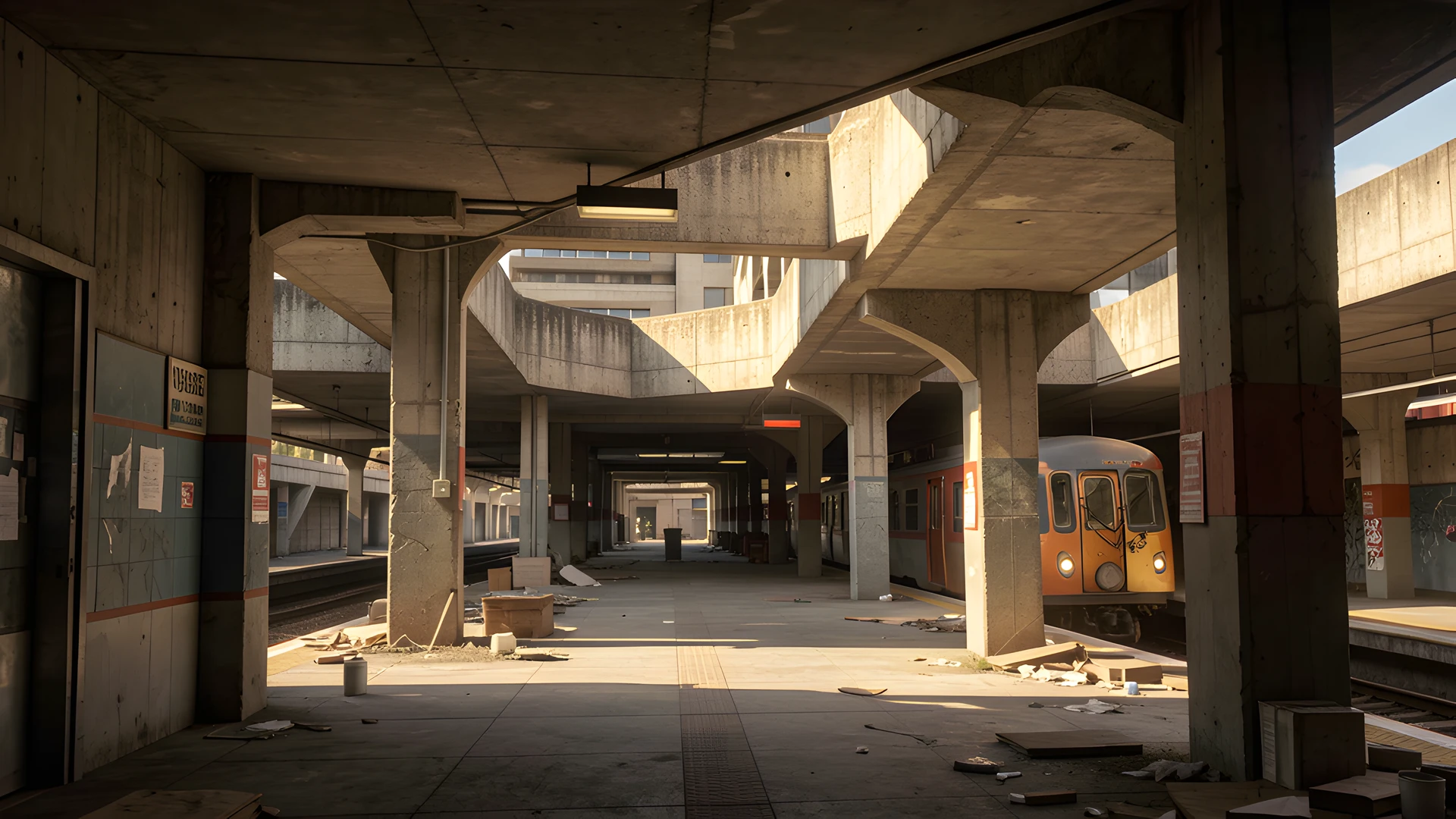 brutalist station style subway sunlit