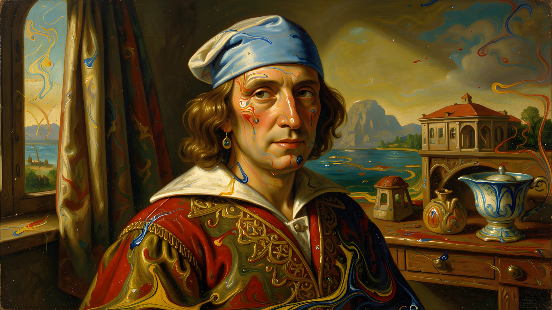 acrylic fluid pour style vermeer