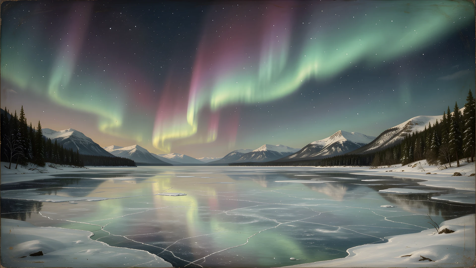 aurora frozen lake masterpiece renaissance sfumato technique