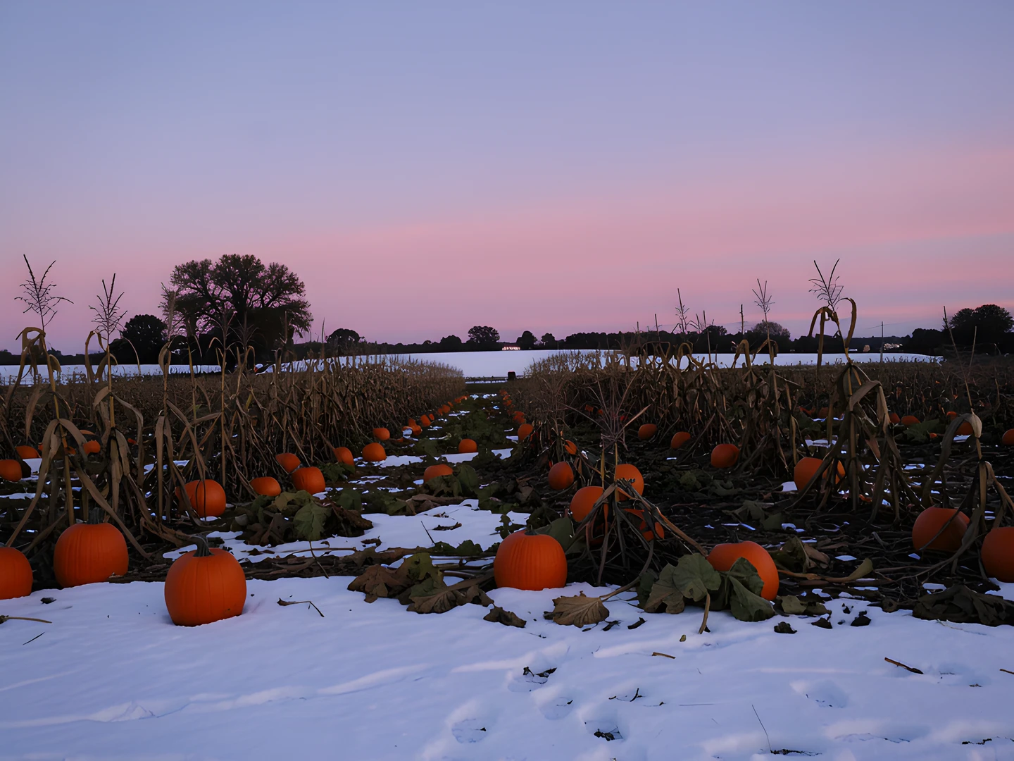 patch pumpkin snow sunset