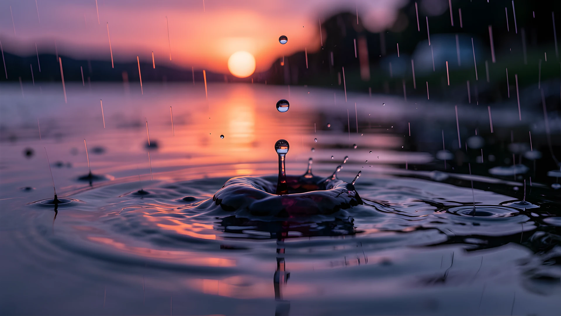 ink macro rain sunset water