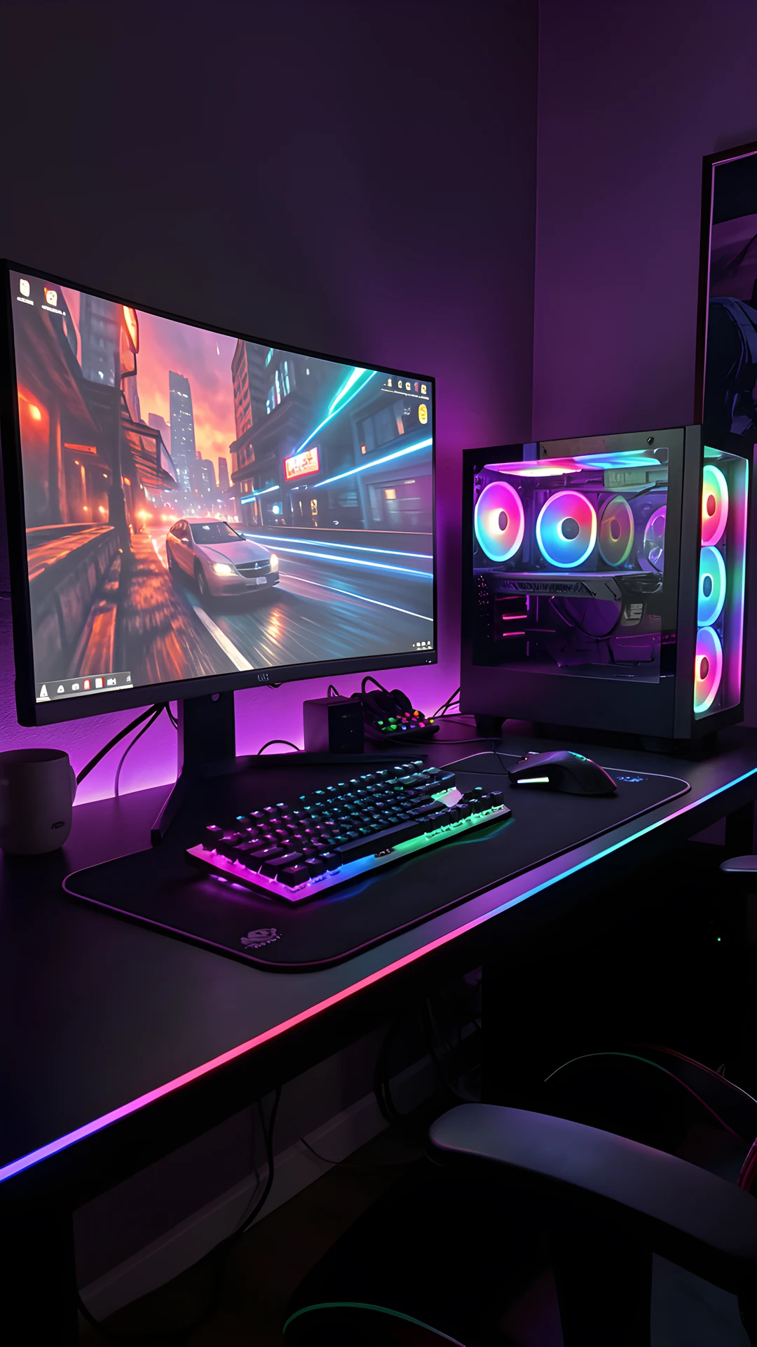 dark dramatic gaming rgb setup