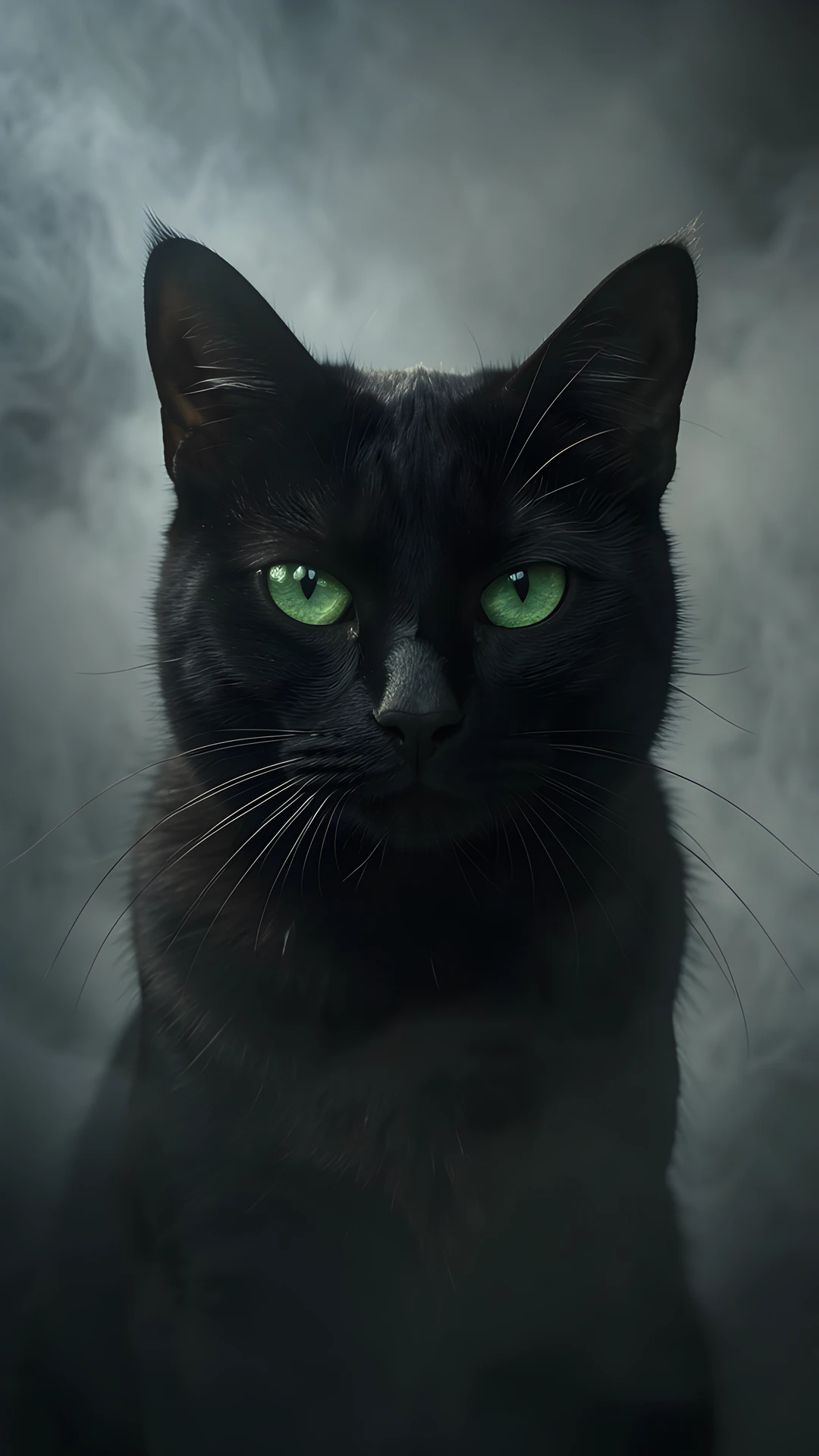 black cat chiaroscuro dreamy eyes green mist