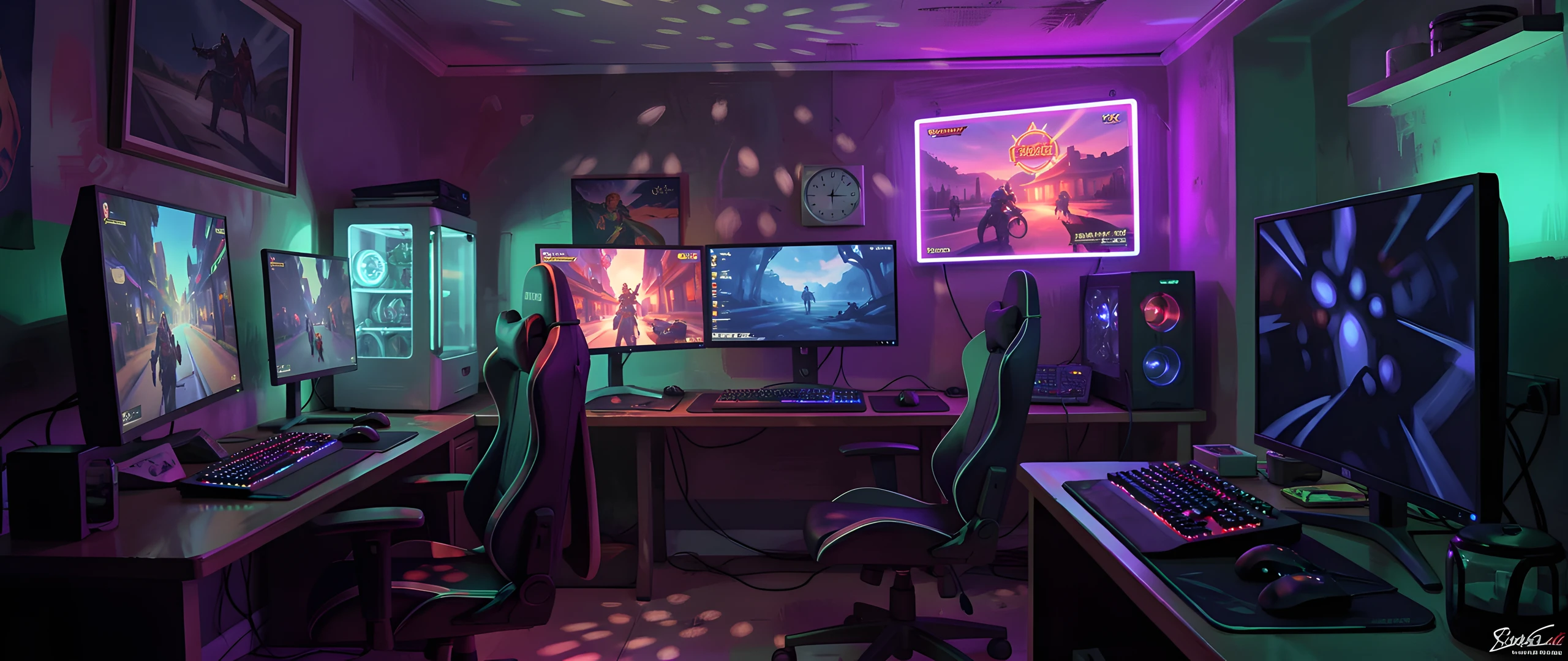 dappled dark gaming impressionist light neon room
