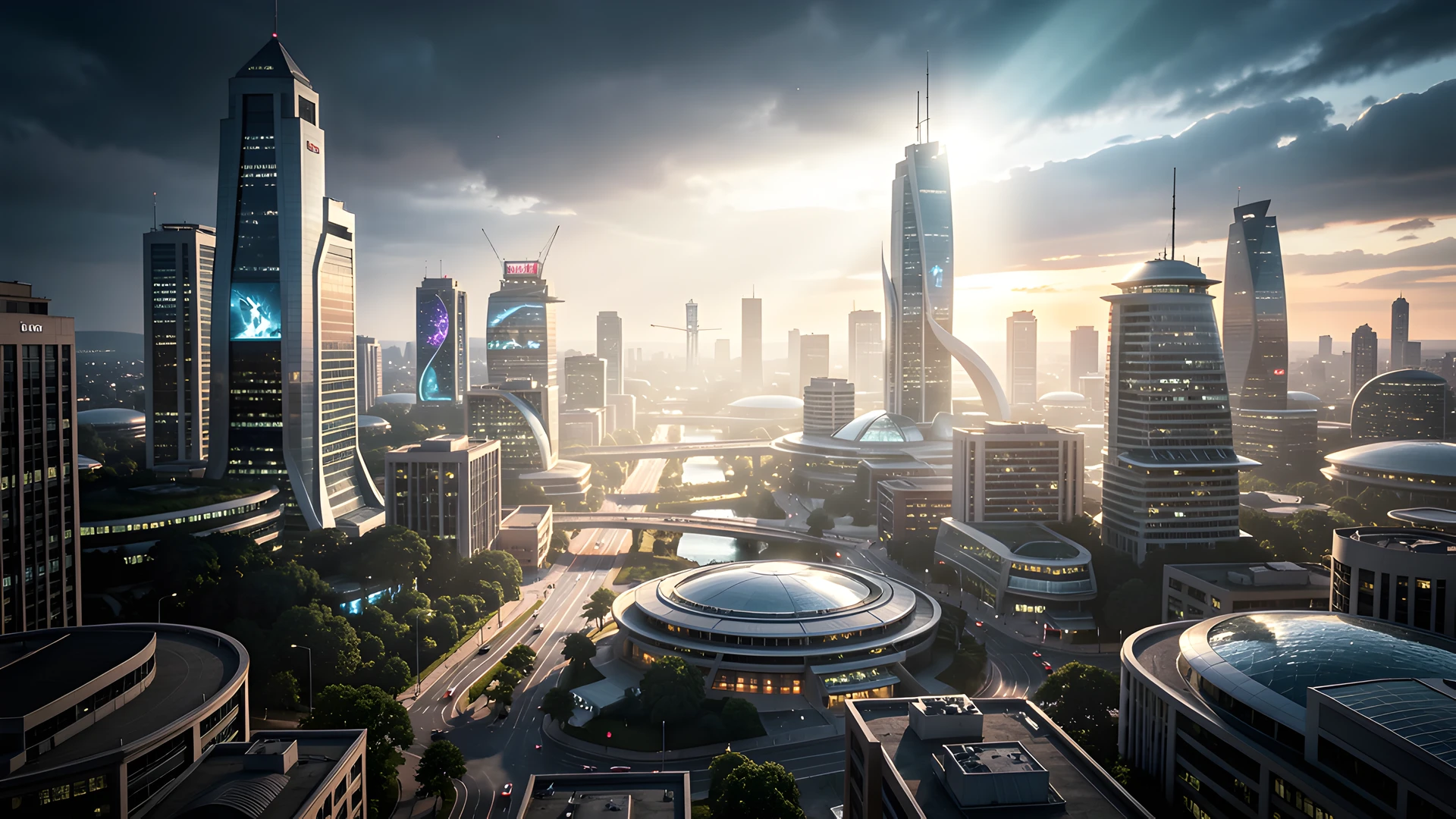 bright chiaroscuro future urban utopia