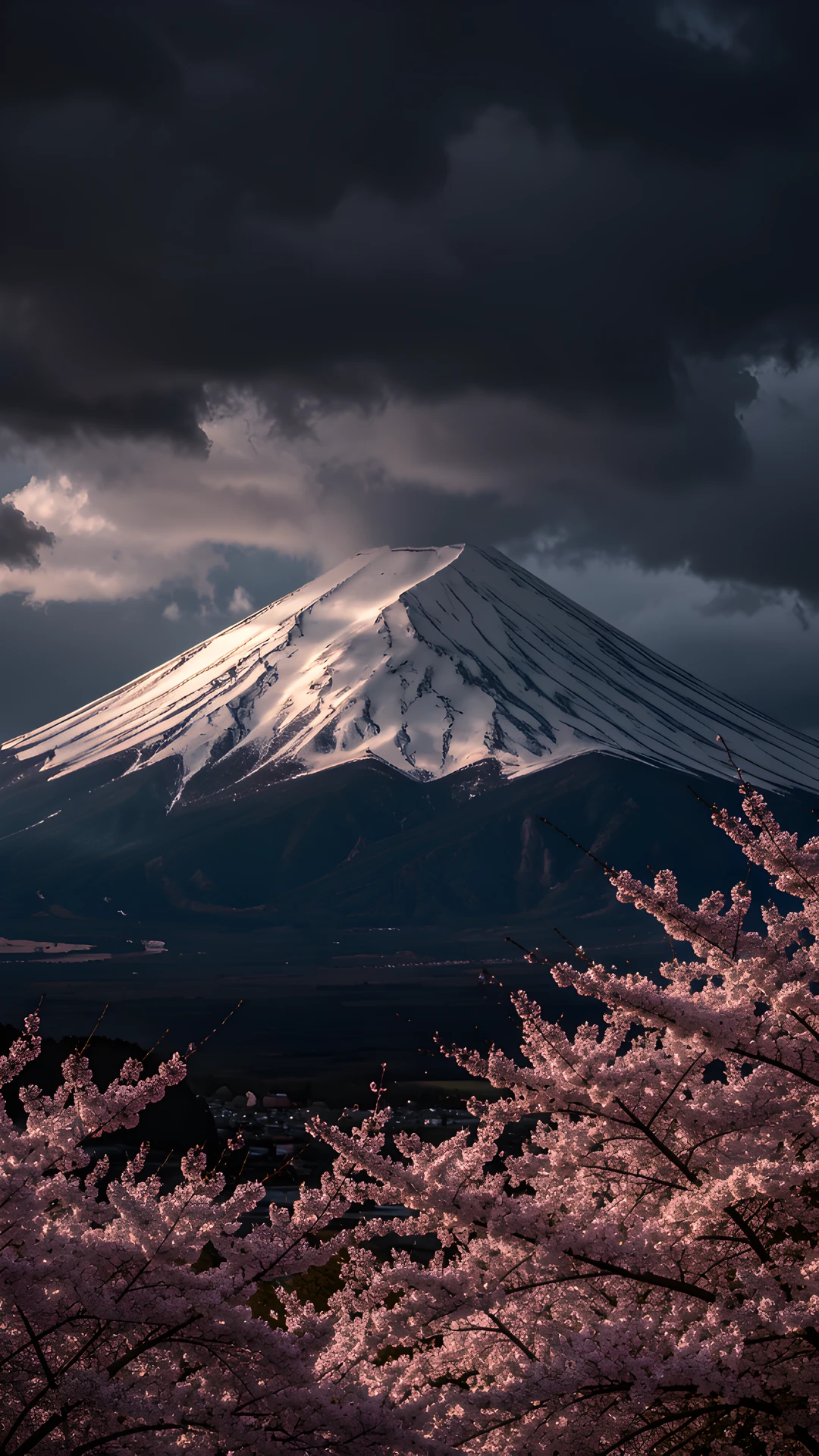 blossoms cherry chiaroscuro fuji mount storm under
