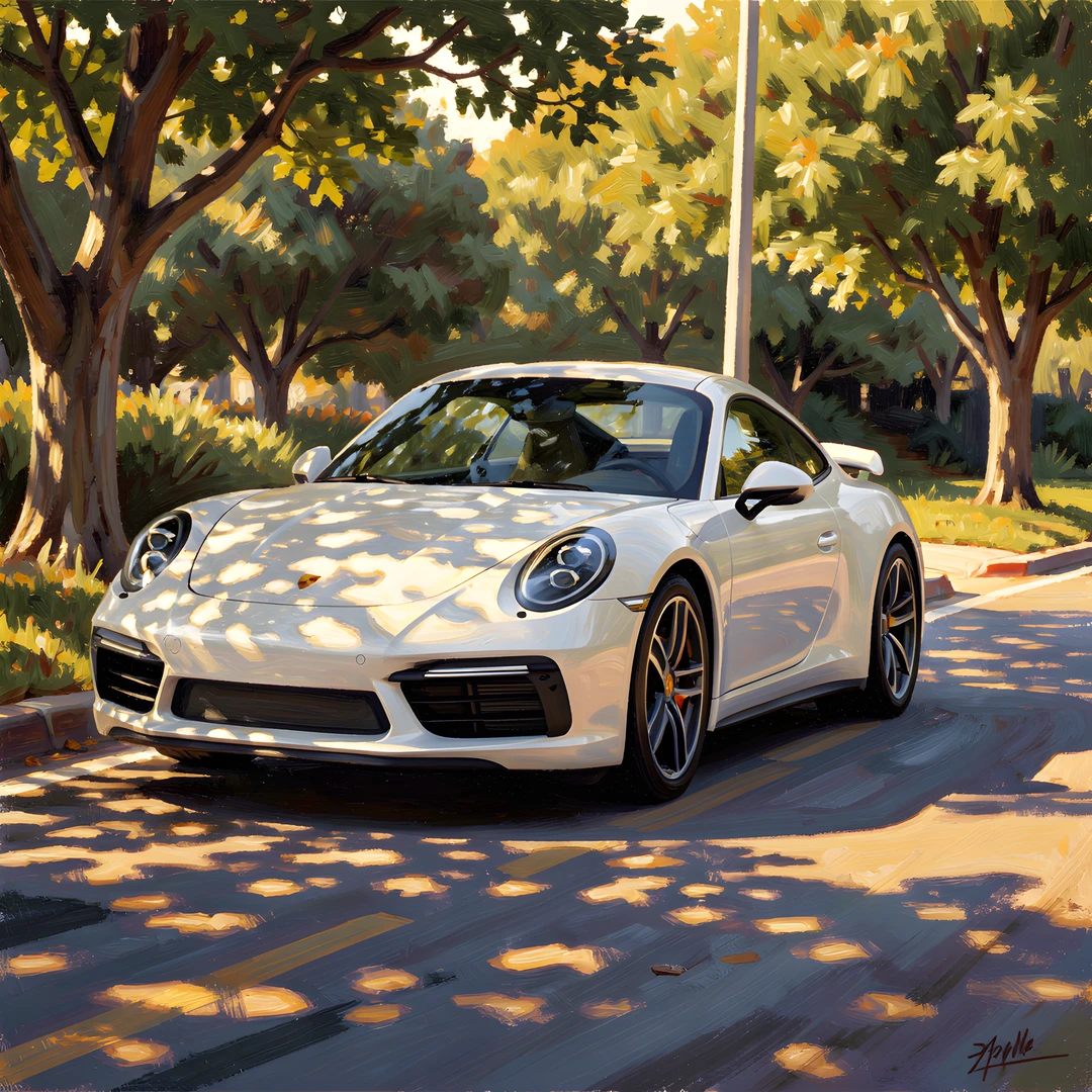 911 bright chiaroscuro dappled impressionist light porsche sleek