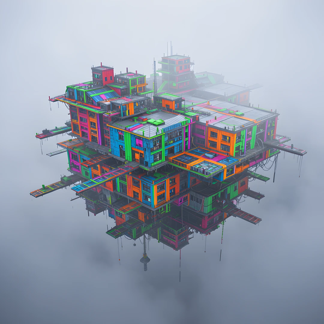 architecture colorful colors floating impossible mist